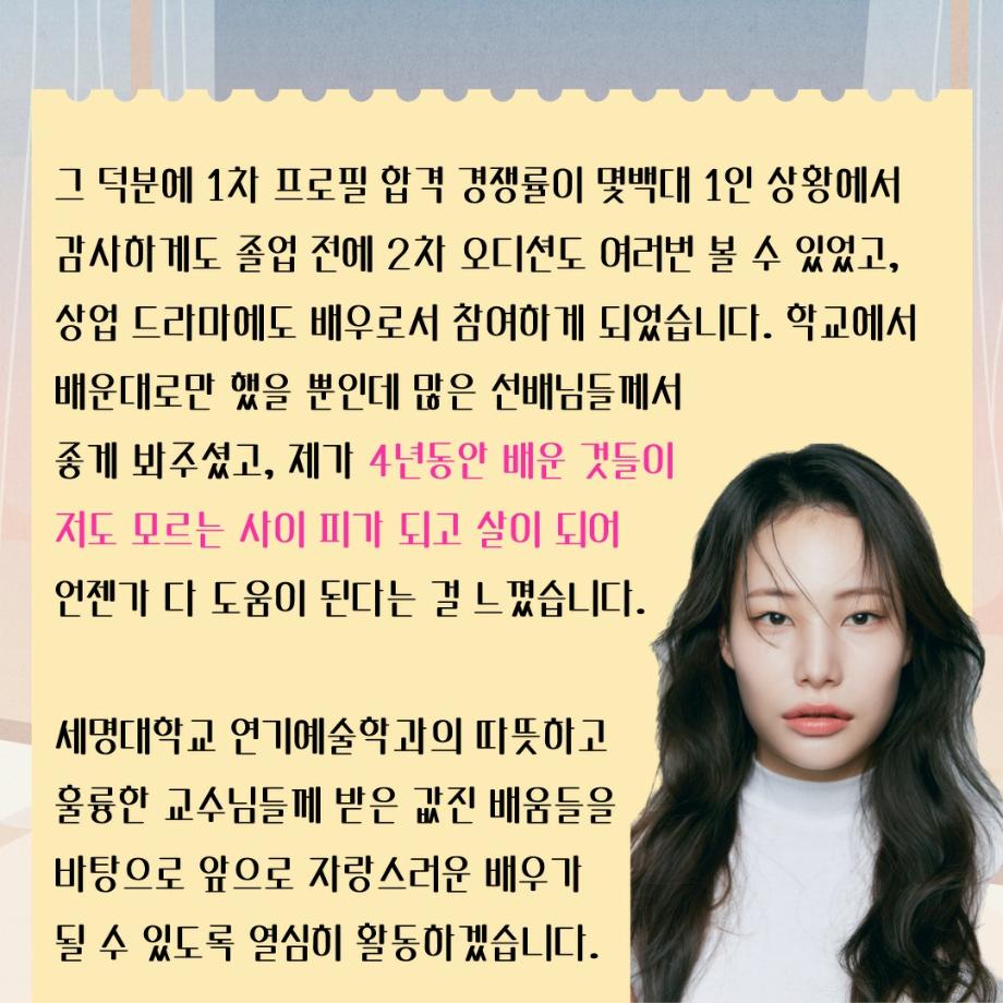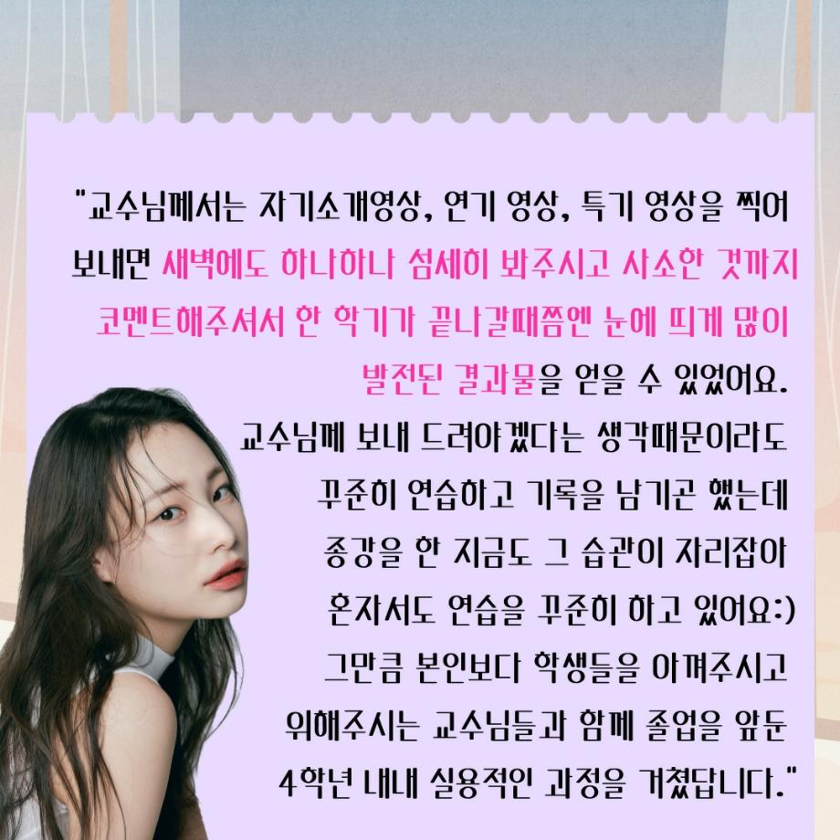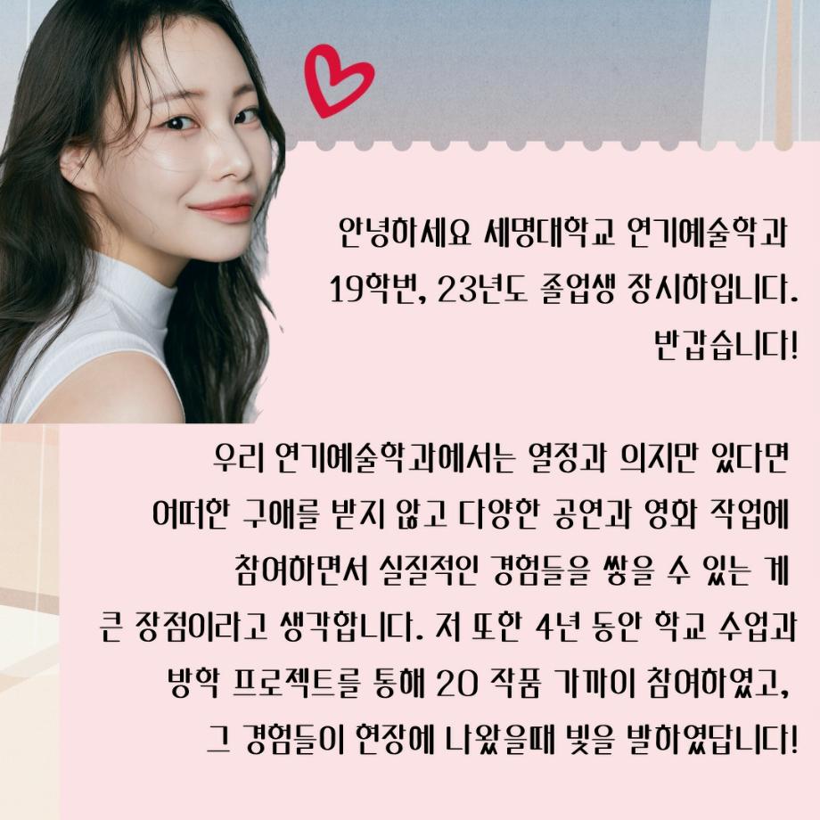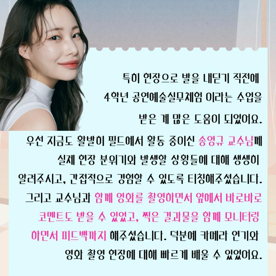 본문 시작 홈으로 커뮤니티 학과소개 입학정보 교수소개 학과과정 커뮤니티 공연예매 안내 홈페이지가이드 포토갤러리 공지사항 포토갤러리 작품DB 동아리 학사일정 학생회 포토갤러리 페이스북 트위터 프린트 [세명대학교 연기예술학과 졸업생 interview] - 장시하편 연기예술학과 2847 2023-02-02 [세명대학교 연기예술학과 졸업생 interview] 23년도 졸업생 19학번 장시하 선배님이 졸업 후에도 좋은 소식으로 재학생들에게 용기와 의지를 끌어올려주셨습니다🔥 23학번 신입생들을 위한 응원의 메세지도 있으니 꼭 확인해 보세요😉😚 다들 이번년도도 힘내서 꿈에 더 가까워지길 바라요🐰 목록 이전[세명대학교 연기예술학과 졸업생 interview] - 유태혁, 유수진편 다음 극단 각인각색 인큐베이팅 공연 - 3/4 (사분의 삼) 담당부서 : 연기예술학과 담당자 : - 연락처 : 043-649-1733 최종수정일 : 2024-10-26 만족도조사 만족도 조사 이 페이지에서 제공하는 정보에 대하여 만족하시나요? 매우만족 만족 보통 불만족 매우불만족
