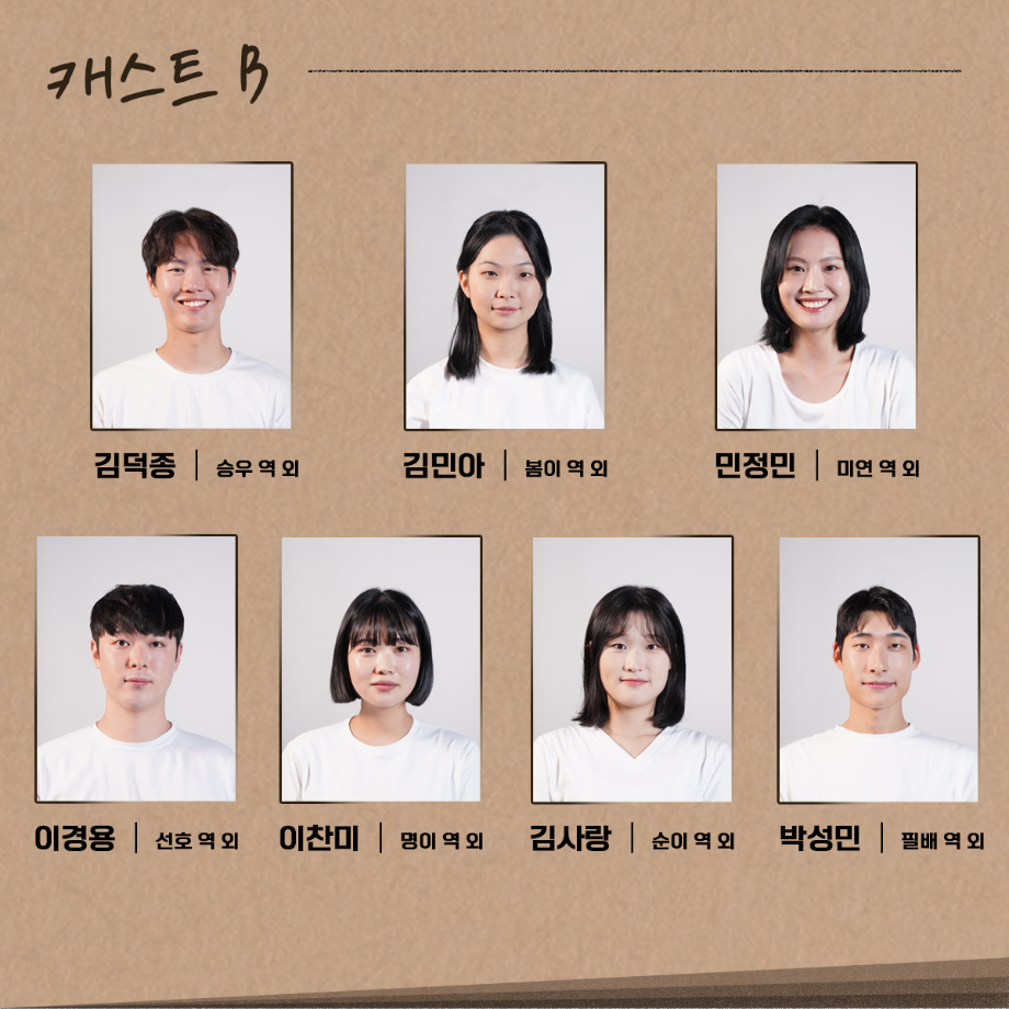 본문 시작 홈으로 커뮤니티 학과소개 입학정보 교수소개 학과과정 커뮤니티 공연예매 안내 홈페이지가이드 포토갤러리 공지사항 포토갤러리 작품DB 동아리 학사일정 학생회 포토갤러리 페이스북 트위터 프린트 제 16회 세명대학교 연기예술학과 졸업작품 <썬샤인의 전사들> 포스터 & 캐스트 연기예술학과 3506 2023-10-31 2023. 11. 02. CAST A 2023. 11. 03. CAST B 2023. 11. 04. CAST A 2023. 11. 05. CAST B 서울 대학로 민송아트홀 1관 목록 이전2023 공연예술 전공자를 위한 취업 특강 다음 학습법 특강 4차 - PPT제작 및 스피치 노하우 담당부서 : 연기예술학과 담당자 : - 연락처 : 043-649-1733 최종수정일 : 2024-10-26 만족도조사 만족도 조사 이 페이지에서 제공하는 정보에 대하여 만족하시나요? 매우만족 만족 보통 불만족 매우불만족