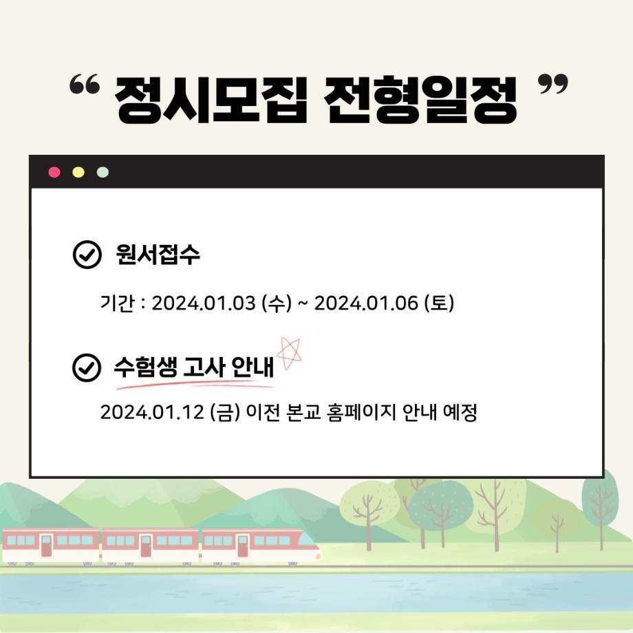 입시생을 위한 링크서비스 입학안내 수시모집 정시모집 편입학 Q&A 학과안내 성적자동산출 입시자료신청 대학소개 장학제도 >학생생활관(기숙사) >찾아오시는길 캠퍼스투어 >국제교류 >학군단(ROTC) >통학버스 입시생 레이어 닫기
