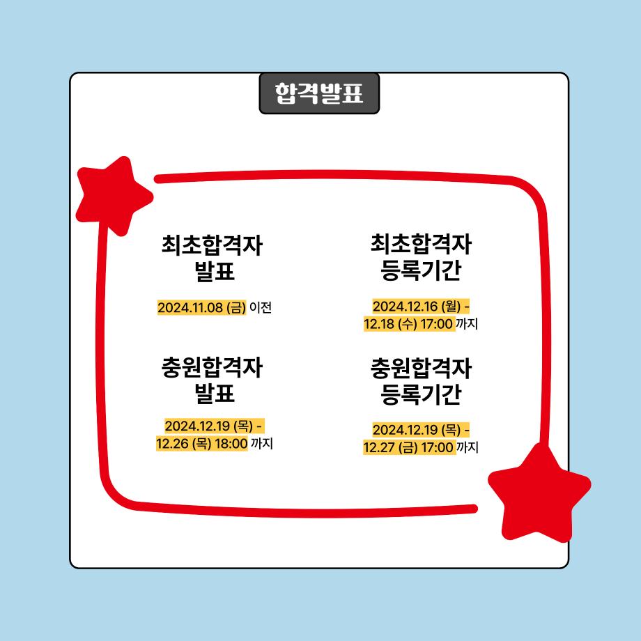 합격 : 24.12.19(목) ~ 24.12.26(목) 18:00까지