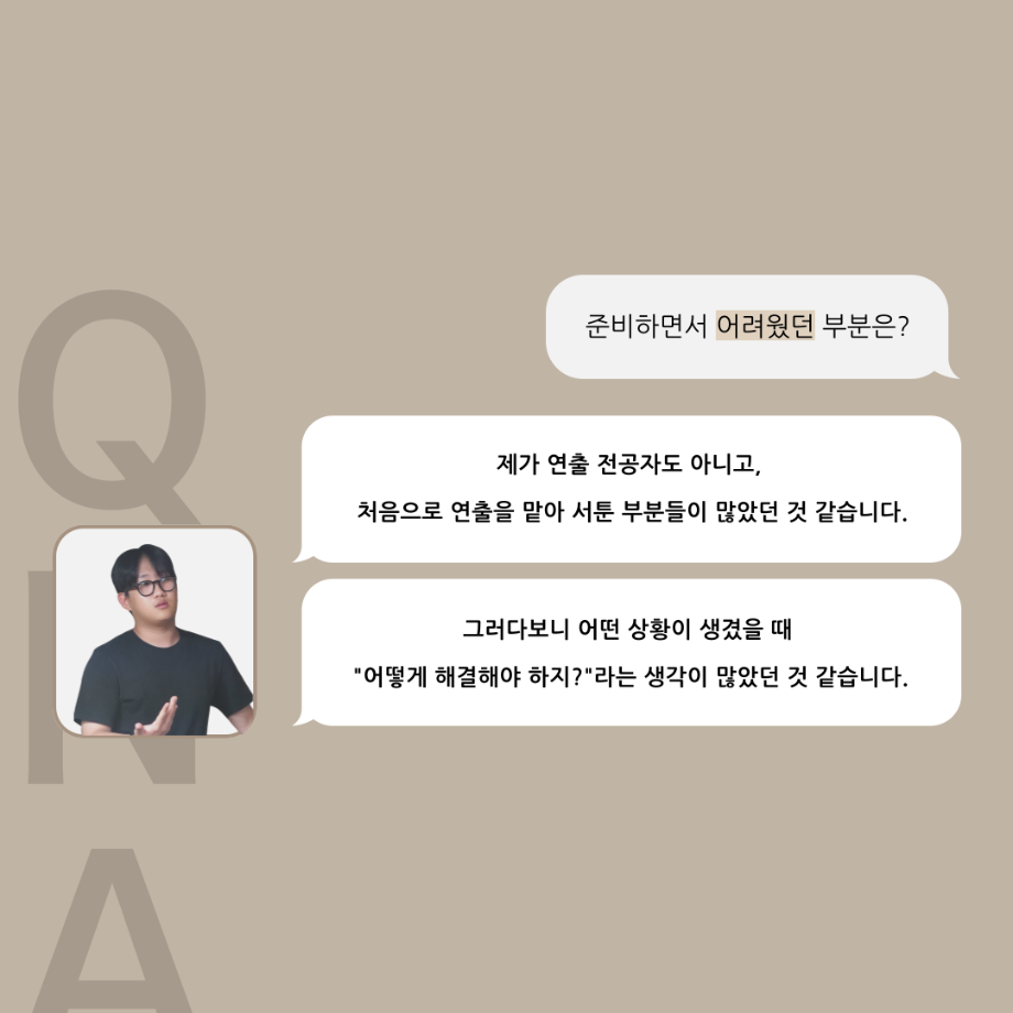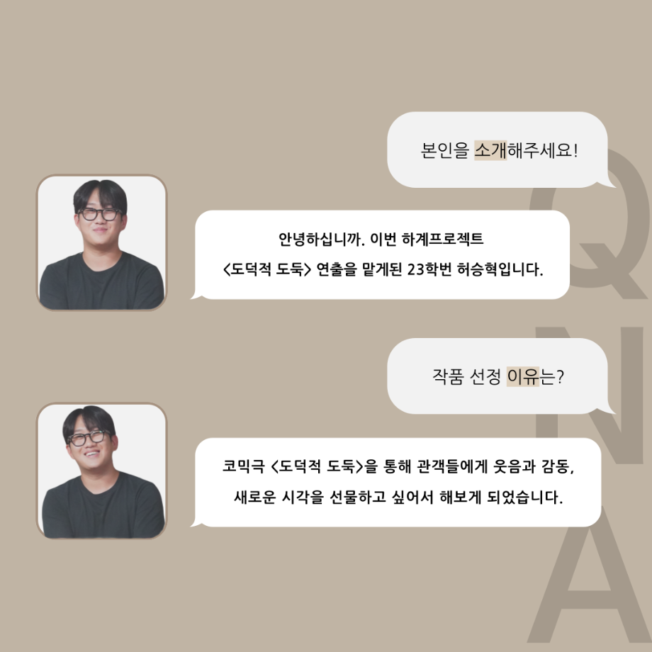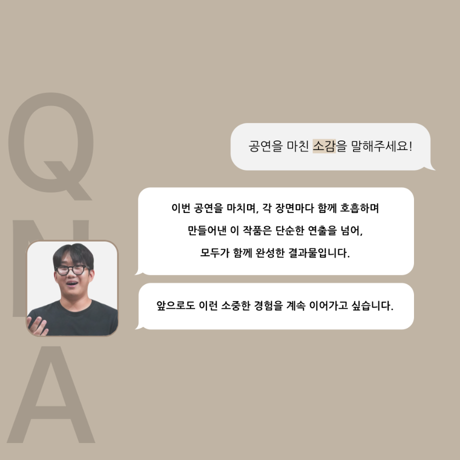 본문 시작 홈으로 커뮤니티 학과소개 입학정보 교수소개 학과과정 커뮤니티 공연예매 안내 홈페이지가이드 포토갤러리 공지사항 포토갤러리 작품DB 동아리 학사일정 학생회 포토갤러리 페이스북 트위터 프린트 '품'위있는 인‘터뷰’ - 24년도 하계프로젝트 학생 연출 <허승혁> 연기예술학과 3331 2024-09-11 안녕하십니까. 24년도 학회 ‘품’ 입니다. 학회 ‘품’의 열 세 번째 인터뷰로 세명대학교 연기예술학과 하계프로젝트 <도덕적도둑>의 학생 연출 허승혁 학우와 인터뷰 하는 시간을 가졌습니다. 작품 선정 이유부터 아끼는 장면, 연출하면서 가장 중요하게 생각했던 장면과 작품을 준비하면서 어려웠던 부분에 대해 알 수 있는 시간을 가졌습니다. 앞으로 있을 인터뷰 컨텐츠인 ‘품터뷰’ 많은 사랑 부탁드립니다. 목록 이전2024학년도 2학기 디지털홍보서포터즈 추가 모집 안내 다음 논문통계분석 LIVE 특강 안내 담당부서 : 연기예술학과 담당자 : - 연락처 : 043-649-1733 최종수정일 : 2024-10-26 만족도조사 만족도 조사 이 페이지에서 제공하는 정보에 대하여 만족하시나요? 매우만족 만족 보통 불만족 매우불만족