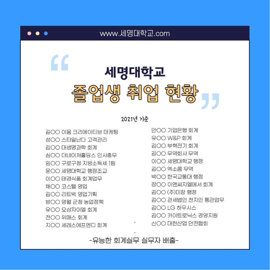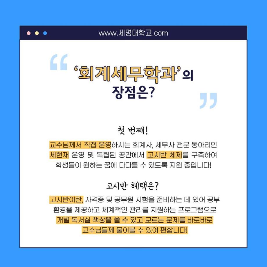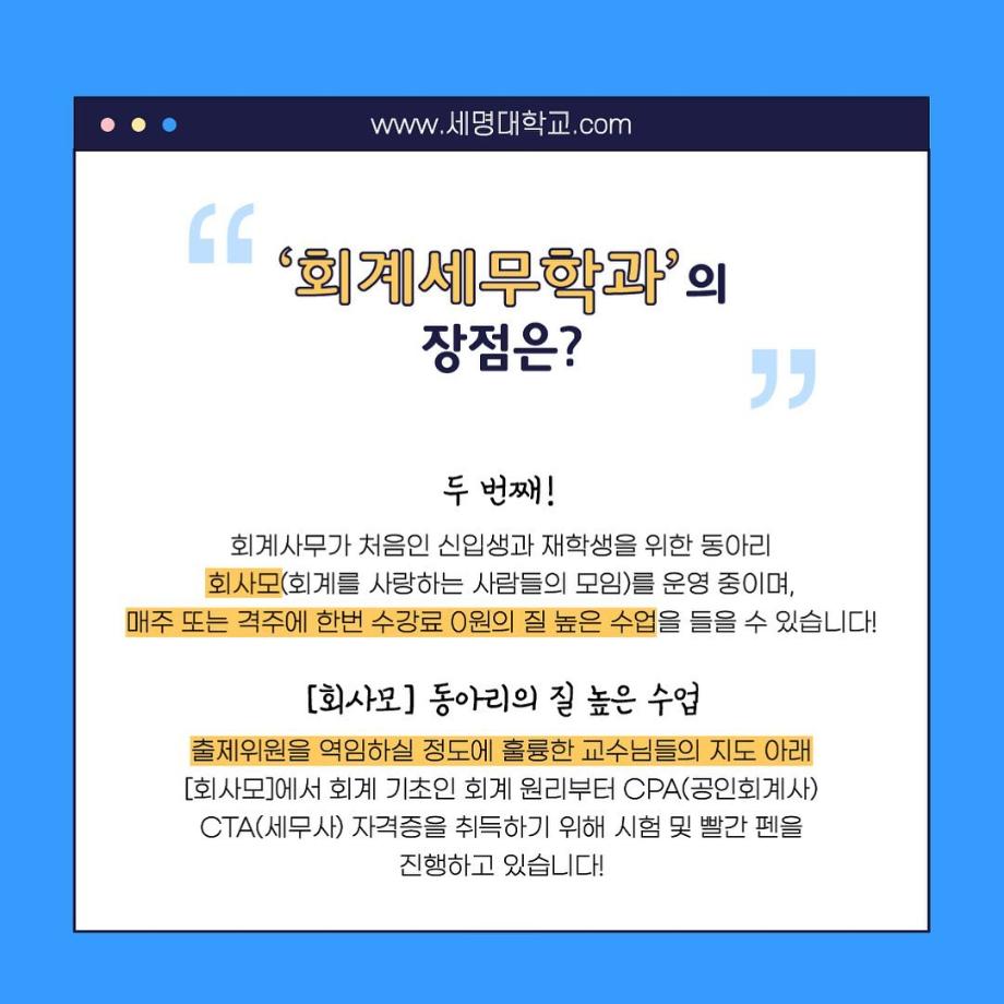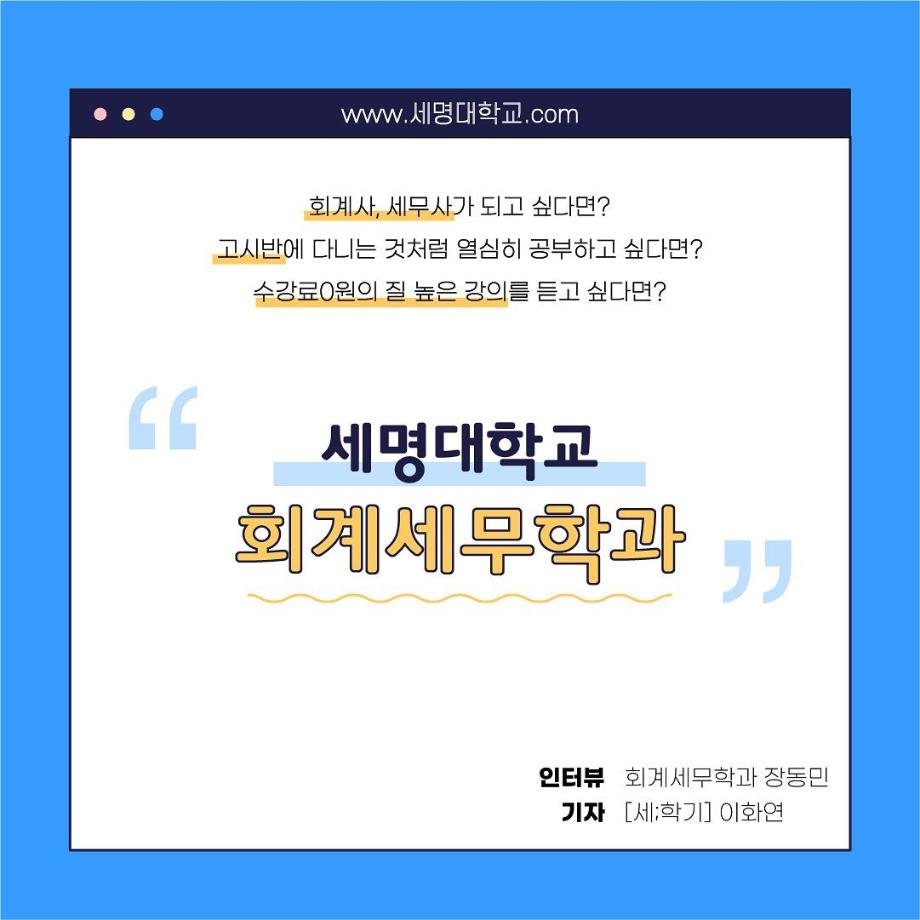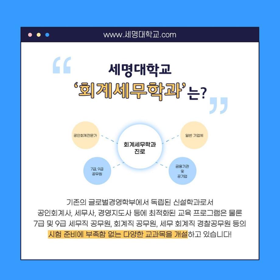 본문 시작 홈으로 학과소식 학과소개 취업정보 교육과정 학과소식 홈페이지가이드 포토갤러리 공지사항 포토갤러리 학과이야기 학과행사 포토갤러리 페이스북 트위터 프린트 우리 학과를 모두 보여줄게_회계세무학과 회계세무학과 1790 2022-09-14 우리 학과를 모두 보여줄게_'회계세무학과'편 목록 이전대학교 필수 술게임 다음 안영미의 대학 Pick! 세명대학교! 담당부서 : 회계세무학과 담당자 : - 연락처 : 043-649-1244 최종수정일 : 2024-10-26 만족도조사 만족도 조사 이 페이지에서 제공하는 정보에 대하여 만족하시나요? 매우만족 만족 보통 불만족 매우불만족
