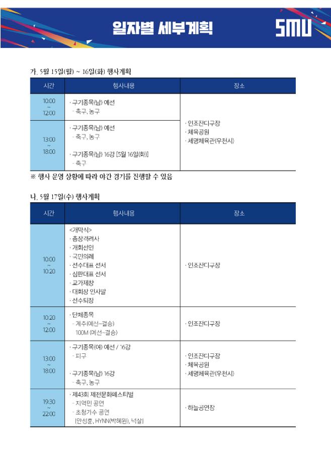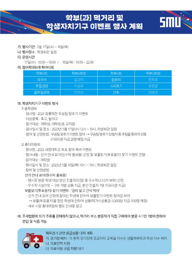본문 시작 홈으로 학과소식 학과소개 취업정보 교육과정 학과소식 홈페이지가이드 포토갤러리 공지사항 포토갤러리 학과이야기 학과행사 포토갤러리 페이스북 트위터 프린트 세명대학교 제30회 청룡체전 회계세무학과 9178 2023-05-15 세명대학교 제30회 청룡축전!🎉 2023.05.17.(수)~19.(금) 체육대회와 더불어 먹거리 행사 및 다양한 이벤트도 함께 진행된다고 합니다😍 많은 관심과 참여 부탁드립니다!!! 목록 이전세명대학교 <등록금 책임환불제> 다음 2023학년도 세명대학교 하계방학 체류형 프로그램 개방 안내 담당부서 : 회계세무학과 담당자 : - 연락처 : 043-649-1244 최종수정일 : 2024-10-26 만족도조사 만족도 조사 이 페이지에서 제공하는 정보에 대하여 만족하시나요? 매우만족 만족 보통 불만족 매우불만족