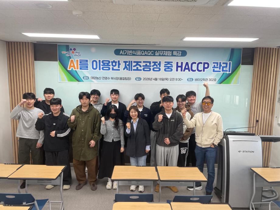 본문 시작 홈으로 커뮤니티 학부소개 진로·취업 교육과정 커뮤니티 대학원 입학상담 홈페이지가이드 갤러리 공지사항 갤러리 학생회 동문회 전공자료실 전공동아리 Youtube Instagram 갤러리 페이스북 트위터 프린트 2026학년도 1학기 실무체험 특강 (강사: 태양농산 전영수 품질팀장) 바이오식품영양학부 40 2026-04-17 목록 이전제5회 세명대학교 벚꽃축제 '벚꽃세봄' 및 제 11회 커뮤니티페스티벌 담당부서 : 바이오식품영양학부 담당자 : - 연락처 : 043-649-1430 최종수정일 : 2024-10-26 만족도조사 만족도 조사 이 페이지에서 제공하는 정보에 대하여 만족하시나요? 매우만족 만족 보통 불만족 매우불만족