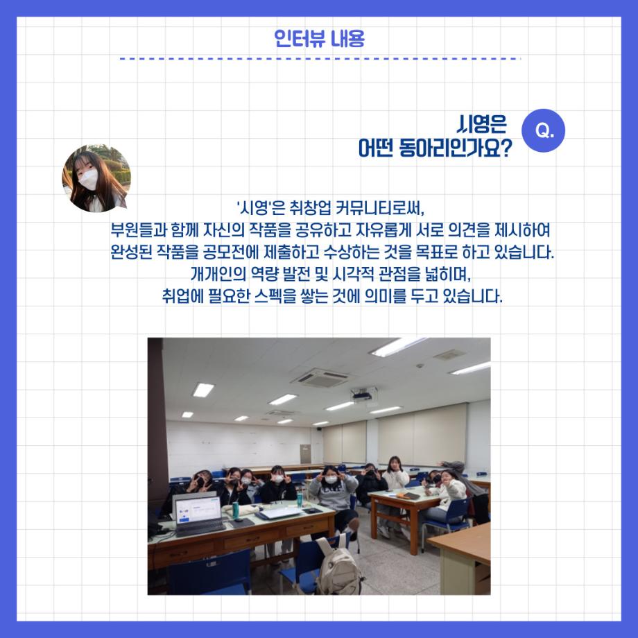 본문 시작 홈으로 학과자랑 학과소개 학과과정 시영소식 입학/취업 AI 학과자랑 SNS소통 홈페이지가이드 공모전 동아리 학과자랑 갤러리 공모전 동아리 졸업전시회 DesingN_us 외 DesingN_us 외 DesingN_us 외 페이스북 트위터 프린트 시각영상디자인학과 동아리 소개_시영 시각영상디자인학과 2177 2023-05-15 목록 이전2022년도 상반기 공모전 우수 수상작 다음 시각영상디자인학과 동아리 소개_미려 담당부서 : 시각영상디자인학과 담당자 : - 연락처 : 043-649-1726 최종수정일 : 2024-10-26 만족도조사 만족도 조사 이 페이지에서 제공하는 정보에 대하여 만족하시나요? 매우만족 만족 보통 불만족 매우불만족