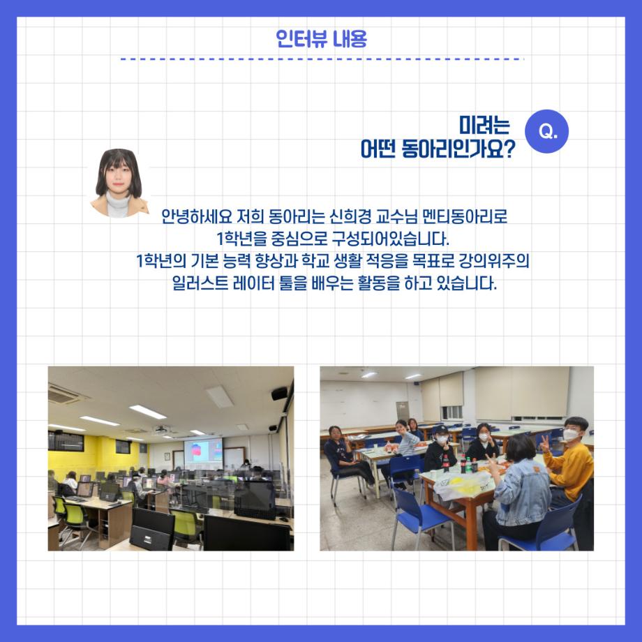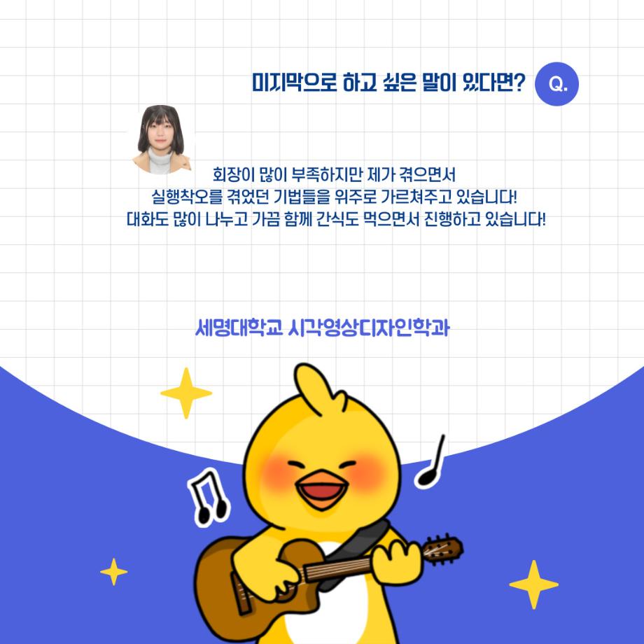 본문 시작 홈으로 학과자랑 학과소개 학과과정 시영소식 입학/취업 AI 학과자랑 SNS소통 홈페이지가이드 공모전 동아리 학과자랑 갤러리 공모전 동아리 졸업전시회 DesingN_us 외 DesingN_us 외 DesingN_us 외 페이스북 트위터 프린트 시각영상디자인학과 동아리 소개_미려 시각영상디자인학과 2200 2023-05-15 목록 이전시각영상디자인학과 동아리 소개_시영 다음 시각영상디자인학과 동아리 소개_스터디자인 담당부서 : 시각영상디자인학과 담당자 : - 연락처 : 043-649-1726 최종수정일 : 2024-10-26 만족도조사 만족도 조사 이 페이지에서 제공하는 정보에 대하여 만족하시나요? 매우만족 만족 보통 불만족 매우불만족