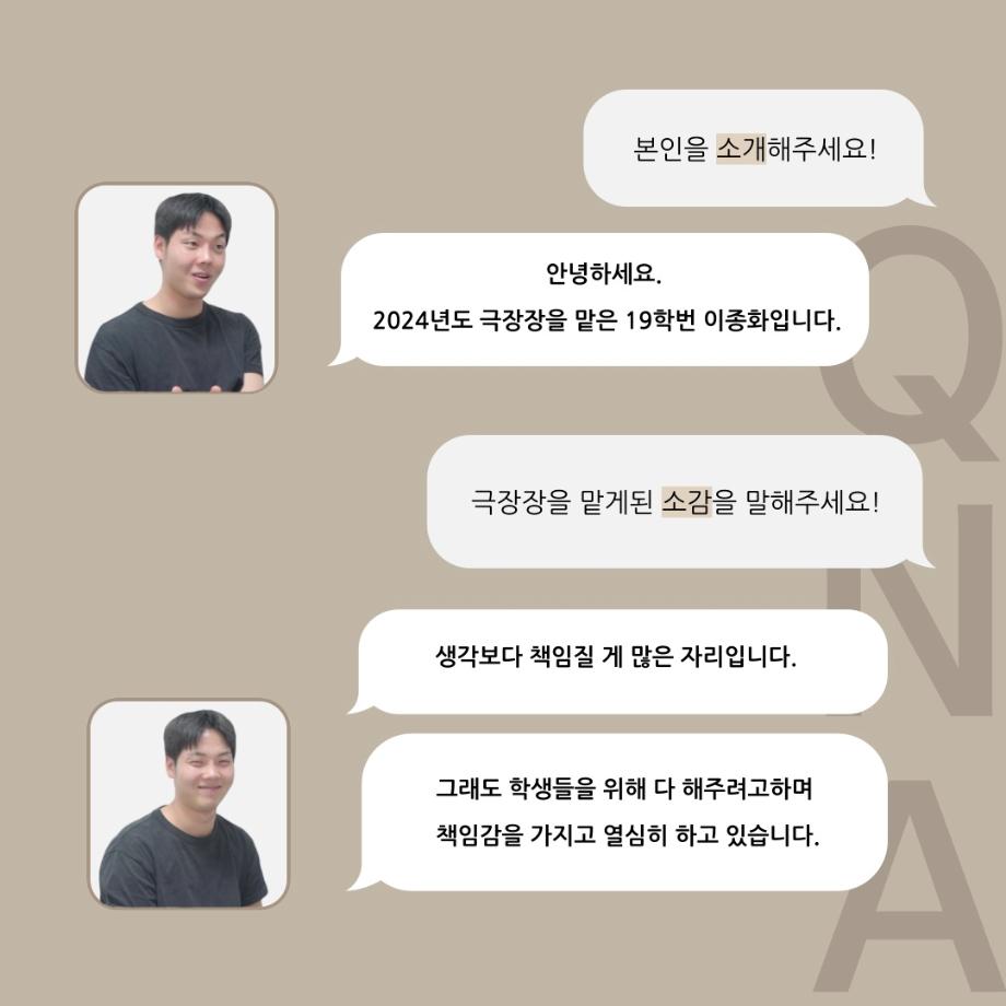 본문 시작 홈으로 커뮤니티 학과소개 입학정보 교수소개 학과과정 커뮤니티 공연예매 안내 홈페이지가이드 동아리 공지사항 포토갤러리 작품DB 동아리 학사일정 학생회 극장 스탭 동아리 무용 동아리 뮤지컬 동아리 극장 스탭 동아리 배우 훈련 동아리 극장 스탭 동아리 페이스북 트위터 프린트 ’품‘위있는 인’터뷰‘ - 24년도 극장장 <이종화> 연기예술학과 2499 2024-07-12 안녕하십니다. 24년도 학회 ‘품‘ 입니다. 학회 ‘품’의 세 번째 인터뷰로 세명대학교 연기예술학과 24학년도 극장장인 이종화 학우와 인터뷰 하는 시간을 가졌습니다. 극장장을 맡게된 소감과 극장은 어떤 의미가 있는지, 파트장과 학과생에게 전하고 싶은 말 등을 질문하는 시간을 가졌습니다. 앞으로 있을 인터뷰 컨텐츠인 ‘품터뷰’ 많은 사랑 부탁드립니다. 목록 이전세명대학교 연기예술학과 극장동아리 ‘짜스트’ - 무대, 조명 다음 ’품‘위있는 인’터뷰‘ - 24년도 무대장 <장보배> 만족도조사 만족도 조사 이 페이지에서 제공하는 정보에 대하여 만족하시나요? 매우만족 만족 보통 불만족 매우불만족
