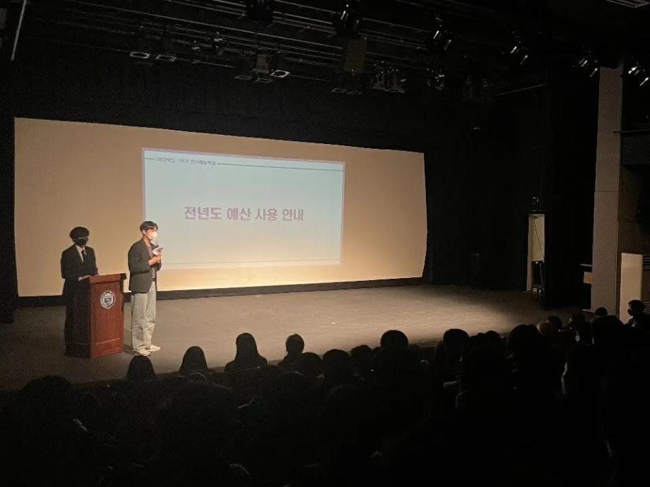 1부에서는 학생회 '아'의 부서 소개를 비롯해서 신규 교수님 소개 및 교수님 말씀과 전년도 예산 사용안을 공개하였습니다. 전년도 예산안과 1학기 예산안은 곧 '세명대학교 연기예술학과' 홈페이지에 업로드 예정이니 못보신 분들은 홈페이지를 통해 확인해주시기바랍니다😊