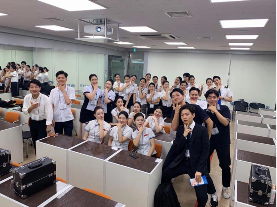 1부는 사회과학관에서 조별로 예선모의면접, 식음료서비스실습과 승객안전브리핑, 헤어두와 메이크업, 워킹과 인사연습 등 실제 재학생들이 듣는 수업을 입시생분들에게 보여드리고 참여해볼 수 있는 프로그램을 진행하였습니다