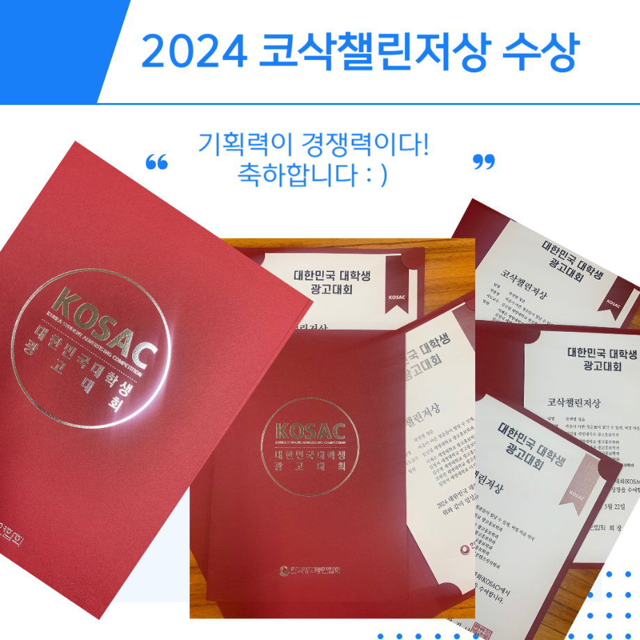 2024년도 대한민국 대학생 광고대회에서 챌린저상을 수상했습니다.