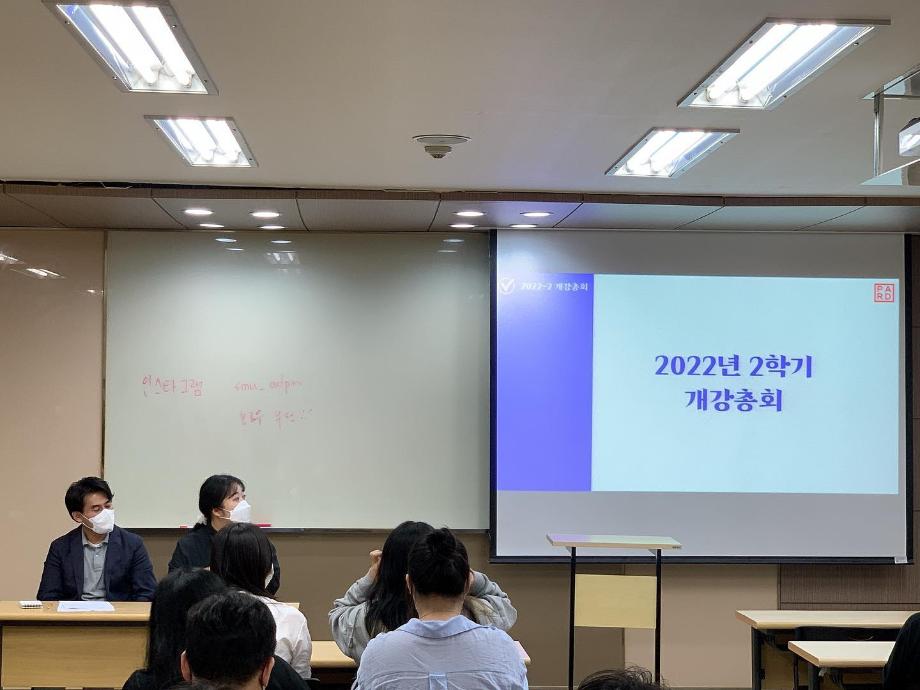 본문 시작 홈으로 매력적인 학과소개 매력적인 학과소개 흥미로운 교육과정 특별CC프로그램 We can 취업 따뜻한 커뮤니티 홈페이지가이드 지금 우리 광홍은 학과개요 학과연혁 교수소개 Wilco로 보는광고홍보학과 지금 우리 광홍은 지금 우리 광홍은 페이스북 트위터 프린트 2022년도 2학기 개강 총회 광고홍보학과 2714 2022-09-16 2022학년도 2학기 개강 총회를 개최했습니다. 2학기 학과 행사 일정 소개와 총회에 오신 학생을 위한 간단한 상품권 추첨 이벤트도 개최했습니다. _일시 : 2022년 9월 6일(화), 18:30 _장소 : 사회과학관 405호 _참석 : 교수님, 학생 1~4학년 목록 이전부산국제광고제 참관 & 학과 홍보부스 운영 다음 2022년도 광고홍보 취업 특강 시리즈 1탄