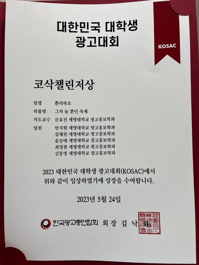 [경축]2023대한민국 대학생 광고대회(KOSAC)_챌린저상