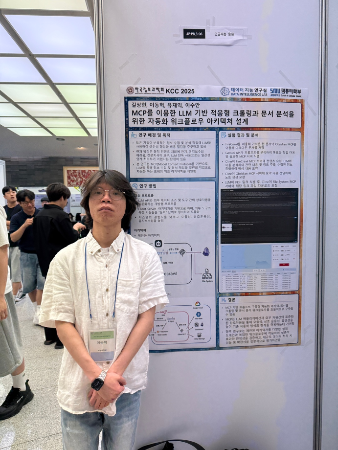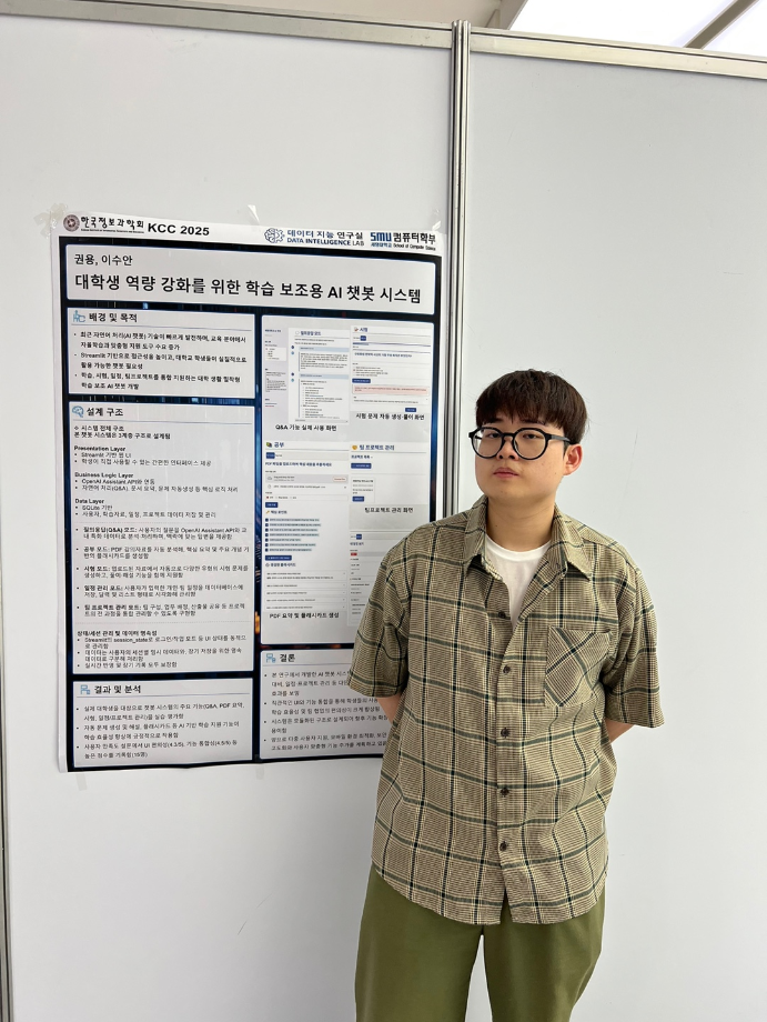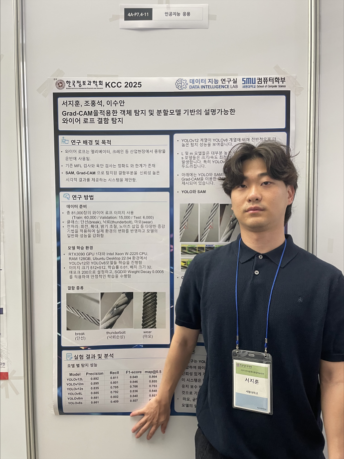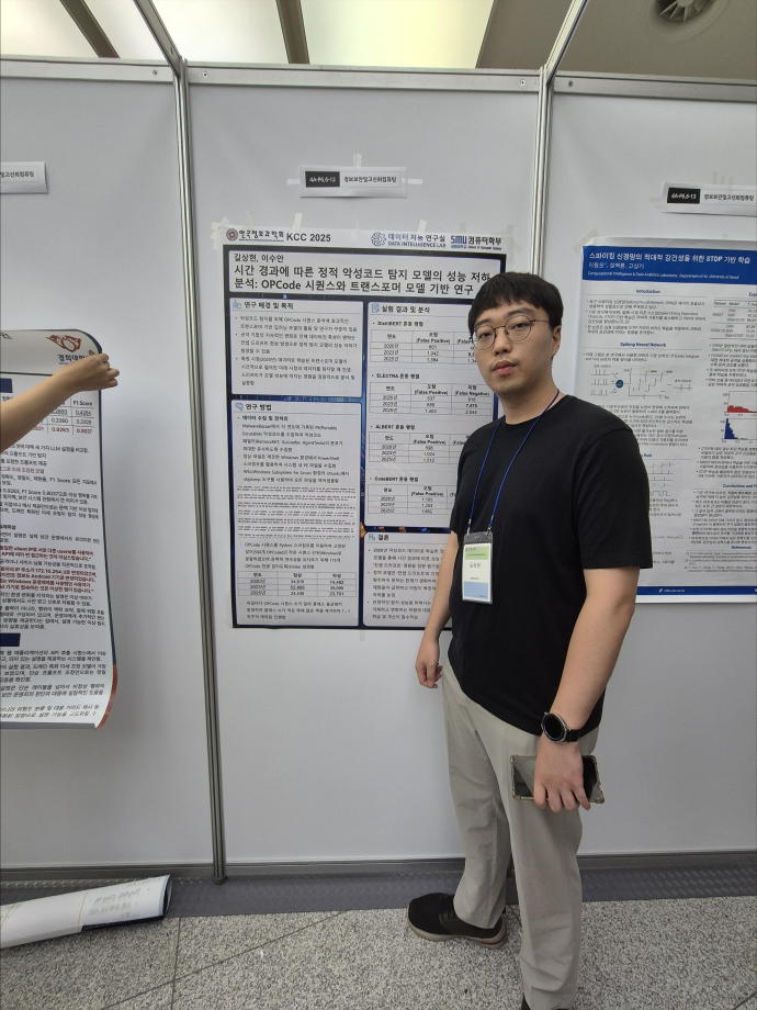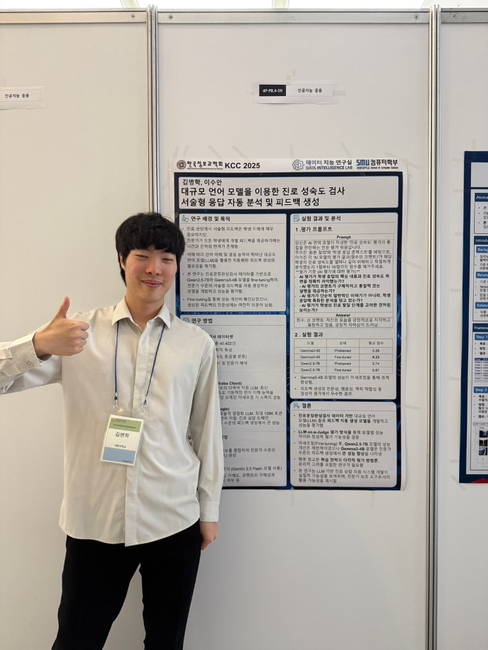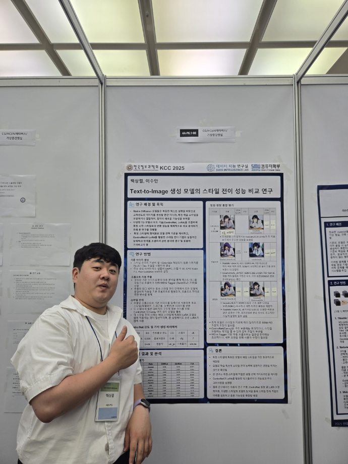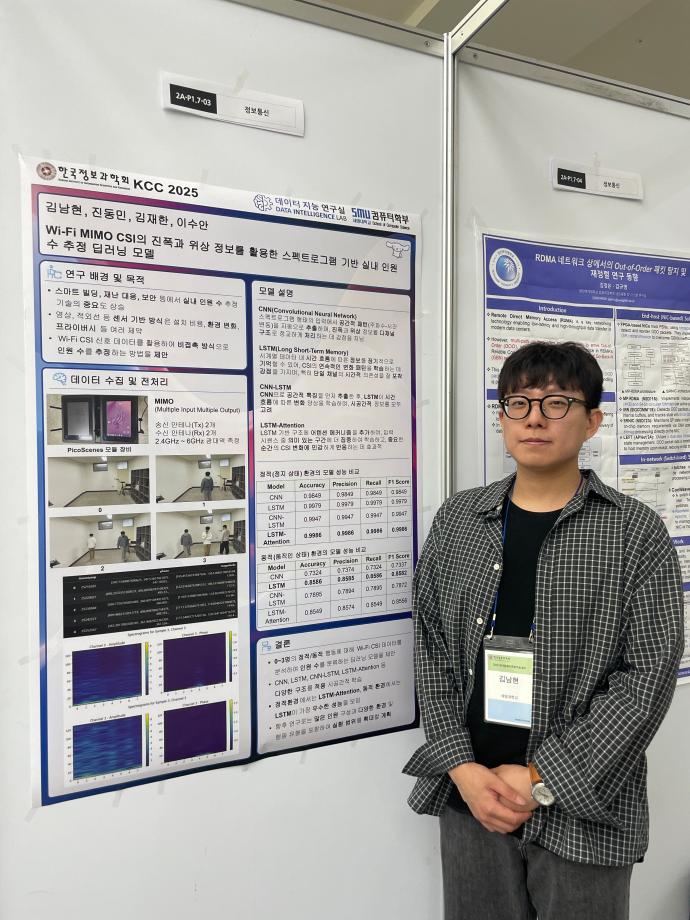 본문 시작 홈으로 학부활동 학부소개 학부활동 교육과정 커뮤니티 학부생활 입학안내 홈페이지가이드 학부행사 학부행사 학생회 활동 전공 동아리 학부갤러리 학부행사 페이스북 트위터 프린트 2025 한국컴퓨터종합학술대회 논문 발표 참가 - 1 컴퓨터학부 772 2025-07-09 국내 컴퓨터분야 최대 학술대회인 2025 한국컴퓨터종합학술대회 논문 발표에 참여한 고상근, 권용, 길상현, 김남현, 김동후, 김병학, 김재성, 박주성, 백상렬, 서지훈, 우강석, 이동혁 학생입니다. 모두 고생하셨습니다! 목록 이전세명대학교 컴퓨터학부 2025-1학기 단체봉사 다음 2025 한국컴퓨터종합학술대회 논문 발표 참가 - 2 만족도조사 만족도 조사 이 페이지에서 제공하는 정보에 대하여 만족하시나요? 매우만족 만족 보통 불만족 매우불만족