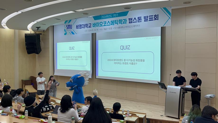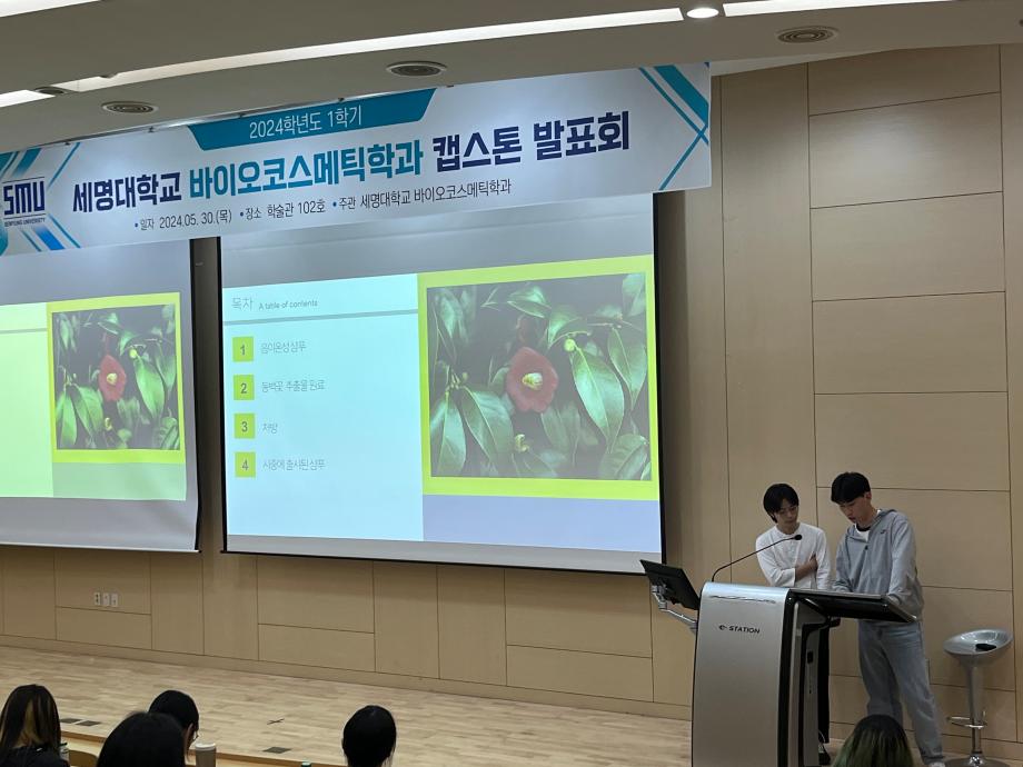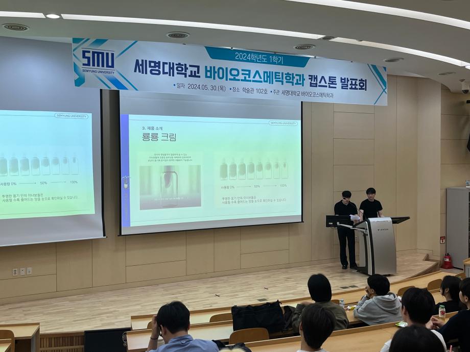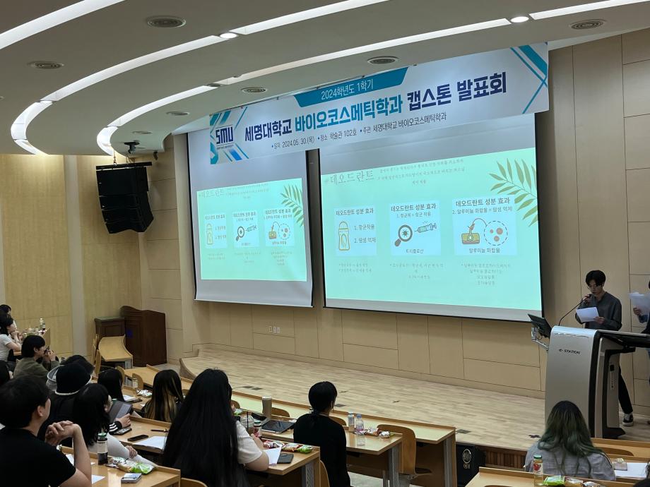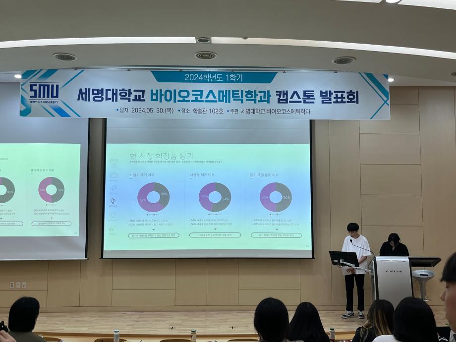 본문 시작 홈으로 학과소개 학과소개 학과과정 대학원 커뮤니티 연구동아리 홈페이지가이드 학과행사 학과개요 학과장인사말 학과연혁 졸업 후 진로 교수소개 학과행사 학과행사 페이스북 트위터 프린트 2024학년도 1학기 바이오코스메틱학과 캡스톤발표회 바이오코스메틱학과 2350 2024-05-31 2024년 05월 30일 학술관 102호에서 바이오코스메틱학과 캡스톤 발표회를 진행하였습니다. 각자 준비한 발표자료를 가지고 학우들과 교류하며 발표,질의,응답등을 진행하였으며 학우들과 전공에 대한 지식을 나눌 수 있는 좋은 기회였습니다. 목록 이전2024학년도 바이오코스메틱학과 스승의날 행사 다음 2025학년도 학과 M.T 만족도조사 만족도 조사 이 페이지에서 제공하는 정보에 대하여 만족하시나요? 매우만족 만족 보통 불만족 매우불만족