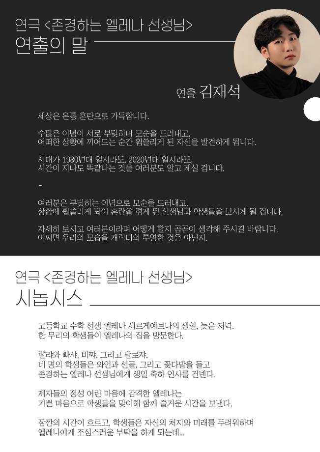 본문 시작 홈으로 학과과정 학과소개 입학정보 교수소개 학과과정 커뮤니티 공연예매 안내 홈페이지가이드 비교과프로그램 교육과정 전공교육 체계도 비교과프로그램 MOU 체결 하계, 동계 프로젝트 하계, 동계 프로젝트 연극놀이 지도사 양성 교육 현장실습 프로그램 액팅플러스 하계, 동계 프로젝트 페이스북 트위터 프린트 2021학년도 동계 프로젝트 '존경하는 엘레나 선생님' 연기예술학과 2550 2021-03-09 목록 다음 2021학년도 동계 프로젝트 ‘넥스트 투 노멀’ 만족도조사 만족도 조사 이 페이지에서 제공하는 정보에 대하여 만족하시나요? 매우만족 만족 보통 불만족 매우불만족