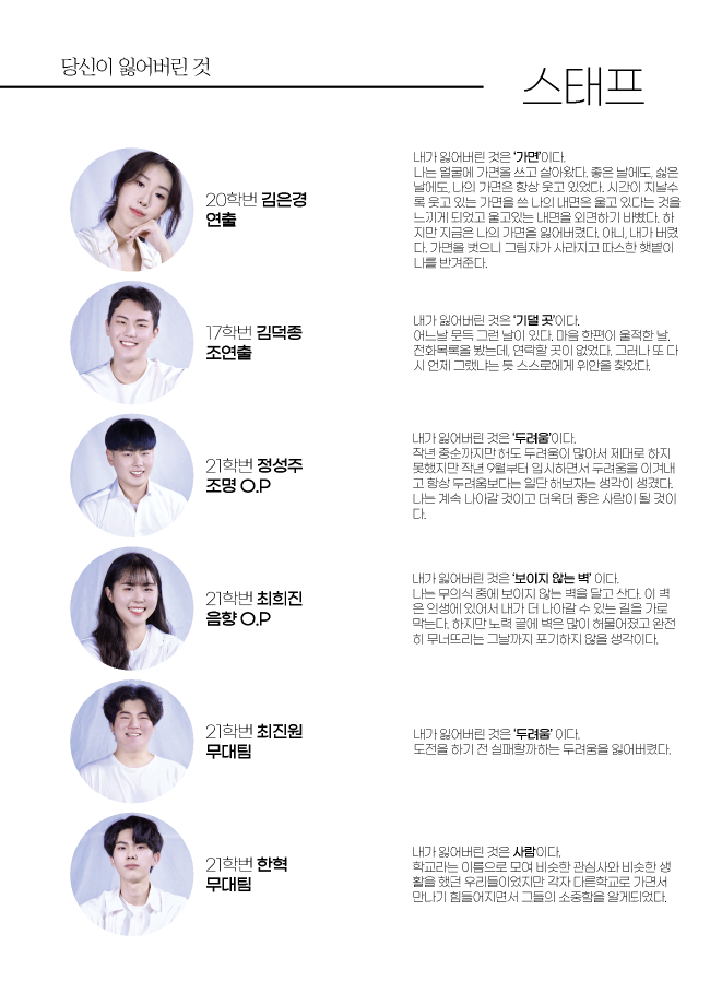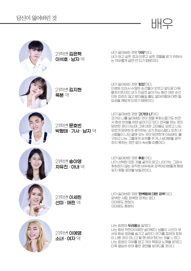 본문 시작 홈으로 학과과정 학과소개 입학정보 교수소개 학과과정 커뮤니티 공연예매 안내 홈페이지가이드 비교과프로그램 교육과정 전공교육 체계도 비교과프로그램 MOU 체결 하계, 동계 프로젝트 하계, 동계 프로젝트 연극놀이 지도사 양성 교육 현장실습 프로그램 액팅플러스 하계, 동계 프로젝트 페이스북 트위터 프린트 2021학년도 하계 프로젝트 '당신이 잃어버린 것' 연기예술학과 2530 2021-08-25 목록 이전2021학년도 하계 프로젝트 ' 쇼팔로비치 유랑극단' 이전2021 극단 포즈 창단 공연 '어정어정 걸어오신다' 만족도조사 만족도 조사 이 페이지에서 제공하는 정보에 대하여 만족하시나요? 매우만족 만족 보통 불만족 매우불만족
