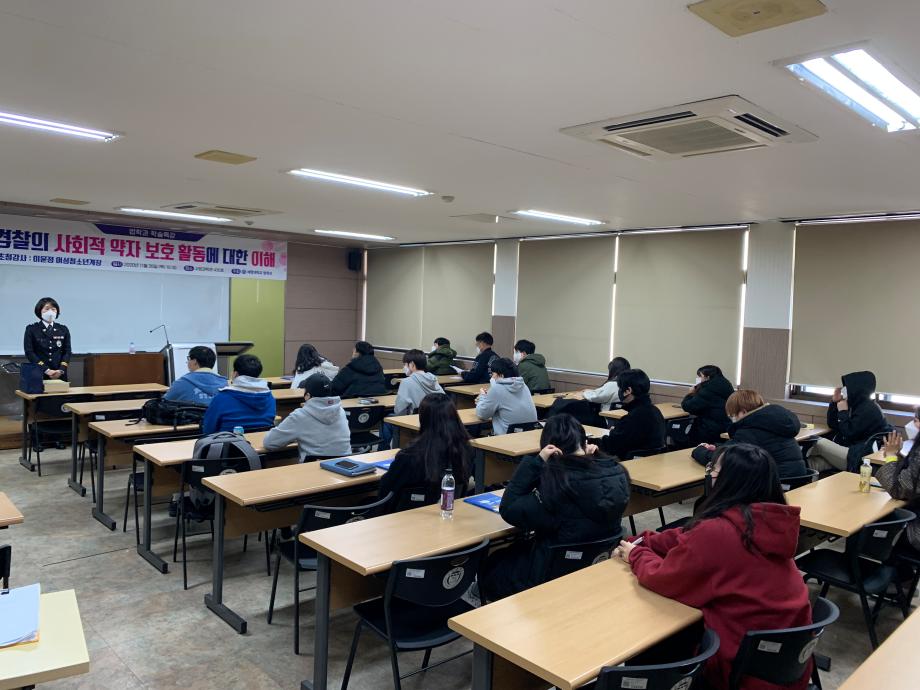 본문 시작 홈으로 학과과정 학과안내 교수소개 학과과정 커뮤니티 홈페이지가이드 비교과프로그램 교육과정 전공교육 체계도 대학원 법학과 비교과프로그램 학사일정 공공법무 지원프로그램 공공법무 지원프로그램 기업법무 지원프로그램 공공법무 지원프로그램 페이스북 트위터 프린트 2020.11.19 경찰 공무원 특강 법학과 3334 2020-11-19 2020년 11월 19일 이윤정 경감님을 모시고 ' 경찰의 사회적 약자 보호 활동에 대한 이해' 이라는 주제로 특강을 진행하였습니다. 목록 다음 2020.11.26 일반공무원 특강 다음 2020.11.19 공인노무사 특강 담당부서 : 법학과 담당자 : - 연락처 : 043-649-1764 최종수정일 : 2024-10-26 만족도조사 만족도 조사 이 페이지에서 제공하는 정보에 대하여 만족하시나요? 매우만족 만족 보통 불만족 매우불만족