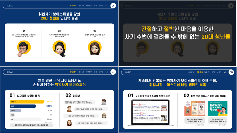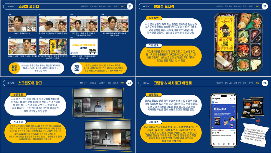 본문 시작 홈으로 흥미로운 교육과정 매력적인 학과소개 흥미로운 교육과정 특별CC프로그램 We can 취업 따뜻한 커뮤니티 홈페이지가이드 작품 갤러리 교육일정 교육과정 전공교육 체계도 졸업후진로 작품 갤러리 작품 갤러리 페이스북 트위터 프린트 [2024KOSAC]대한민국대학생광고대회 출품작 광고홍보학과 4156 2024-09-11 2024년도 대한민국 대학생 광고대회 출품작 주제 : 보이스 피싱 예방 캠페인 제안서 세명대 광고홍보학과는 '기획맛집'을 지향하고, 이를 인정받고 있습니다 : ) 목록 이전[2024KOSAC]대한민국대학생광고대회 출품작 다음 [평판관리]코레일 평판관리커뮤니케이션 기획서