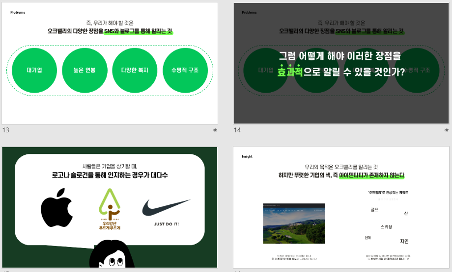 본문 시작 홈으로 흥미로운 교육과정 매력적인 학과소개 흥미로운 교육과정 특별CC프로그램 We can 취업 따뜻한 커뮤니티 홈페이지가이드 작품 갤러리 교육일정 교육과정 전공교육 체계도 졸업후진로 작품 갤러리 작품 갤러리 페이스북 트위터 프린트 [산학연계프로젝트]오크밸리 리조트 브랜드평판 관리 기획서 광고홍보학과 2848 2023-08-01 2023년도 1학기 평판관리커뮤니케이션 수업 산학연계 프로젝트 "오크밸리리조트 브랜드 평판 관리 방안 커뮤니케이션 기획서" 1조 19학번 _ 김채원, 신동영, 안지원 목록 다음 [산학연계프로젝트]오크밸리 리조트 브랜드평판 관리 기획서
