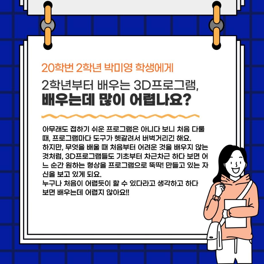 본문 시작 홈으로 교과과정 학과소개 교수소개 교과과정 학과생활 홈페이지가이드 진로 진로 교육과정 전공교육 체계도 자격증 전시회 진로 페이스북 트위터 프린트 산업디자인학과 재학생 인터뷰(2학년) 산업디자인학과 1806 2022-01-24 목록 이전산업디자인학과 재학생 인터뷰(1학년) 다음 산업디자인학과 재학생 인터뷰(3학년) 만족도조사 만족도 조사 이 페이지에서 제공하는 정보에 대하여 만족하시나요? 매우만족 만족 보통 불만족 매우불만족