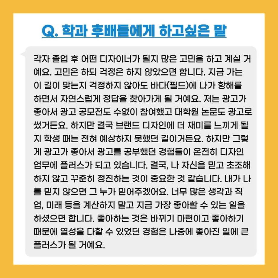 본문 시작 홈으로 입학/취업 학과소개 학과과정 시영소식 입학/취업 AI 학과자랑 SNS소통 홈페이지가이드 취업지금 입학여기 취업지금 전공소개 취업지금 페이스북 트위터 프린트 자랑스럽고 빛나는 선배들 1탄! 시각영상디자인학과 2480 2022-02-07 목록 이전세명동문열전 - 유소연 가화디자인 대표 다음 자랑스럽고 빛나는 선배들 2탄! 담당부서 : 시각영상디자인학과 담당자 : - 연락처 : 043-649-1726 최종수정일 : 2024-10-26 만족도조사 만족도 조사 이 페이지에서 제공하는 정보에 대하여 만족하시나요? 매우만족 만족 보통 불만족 매우불만족