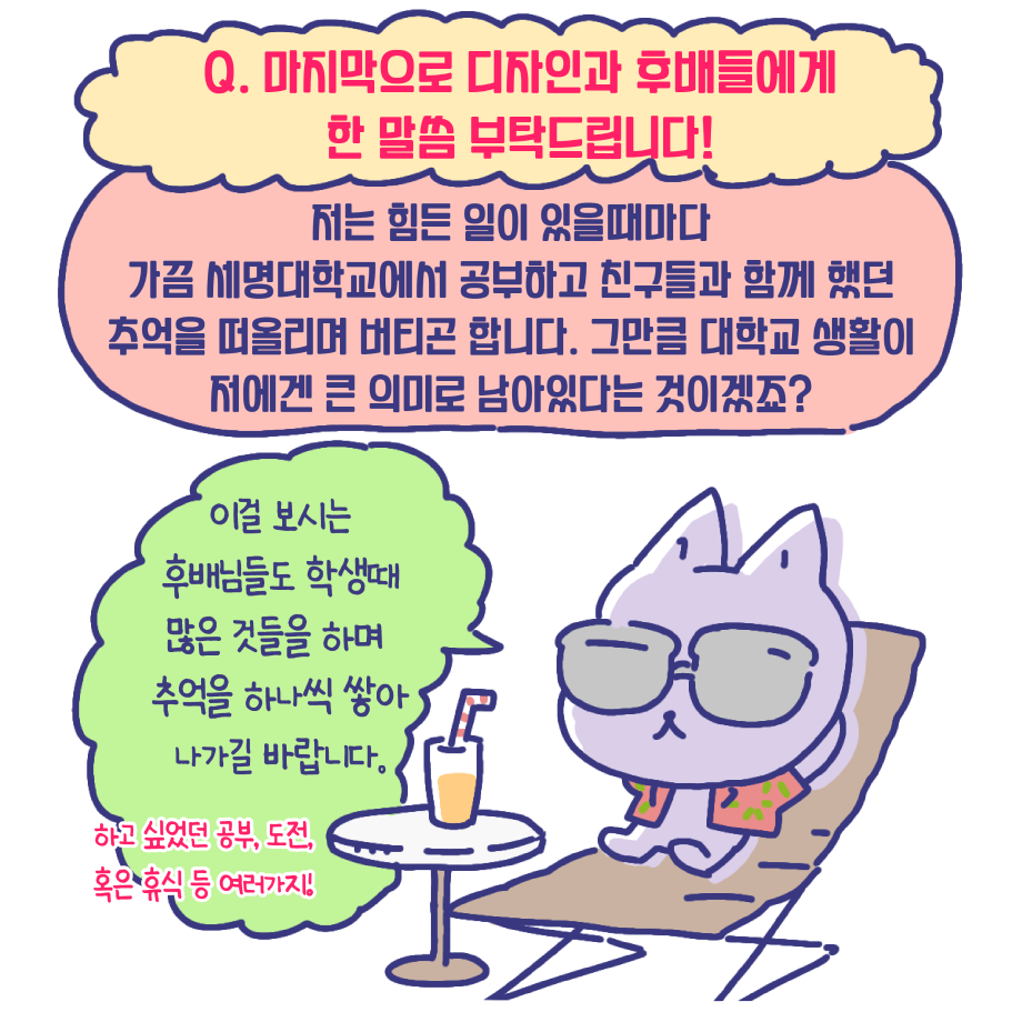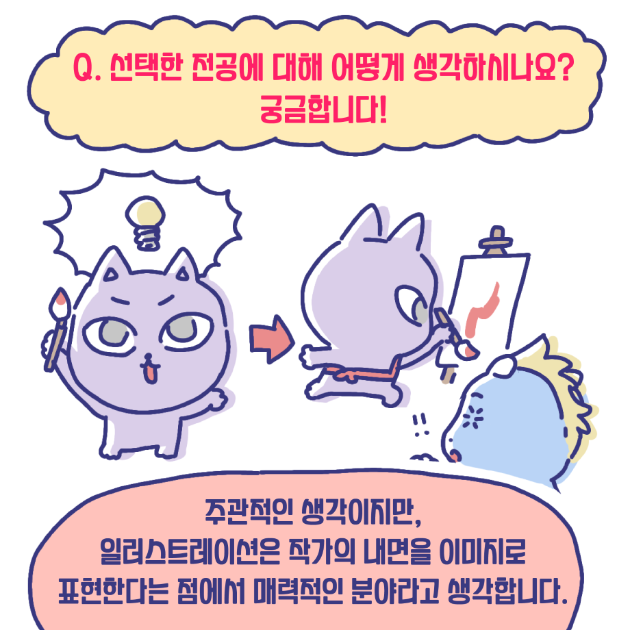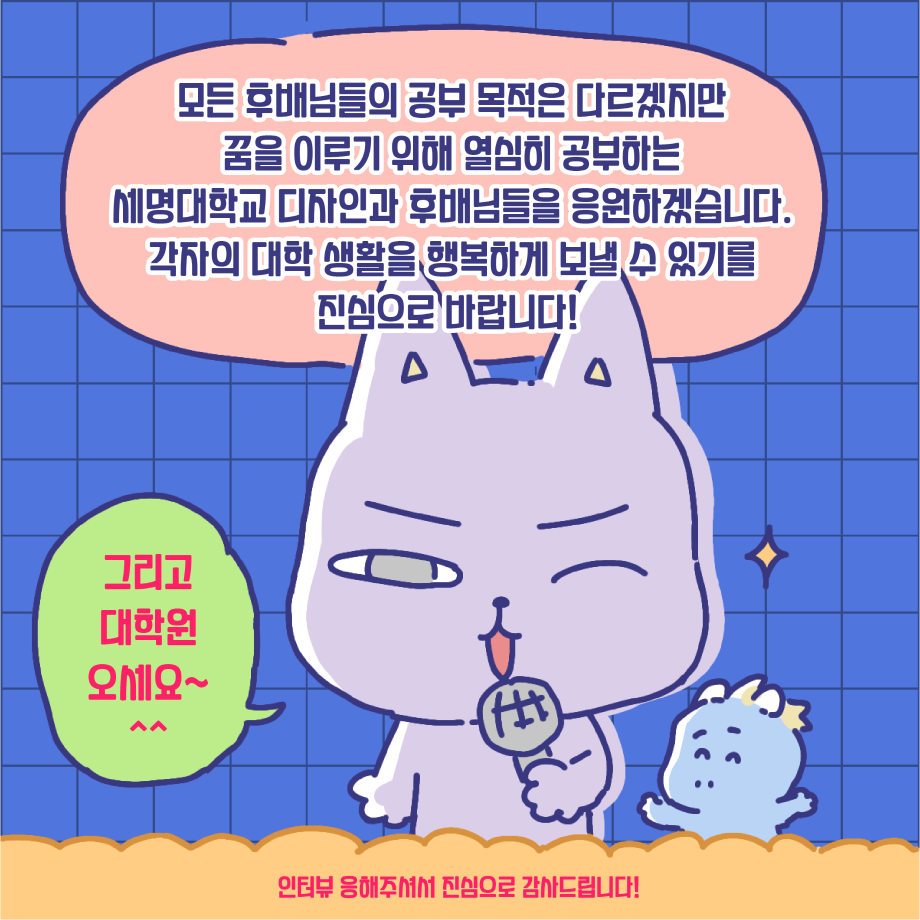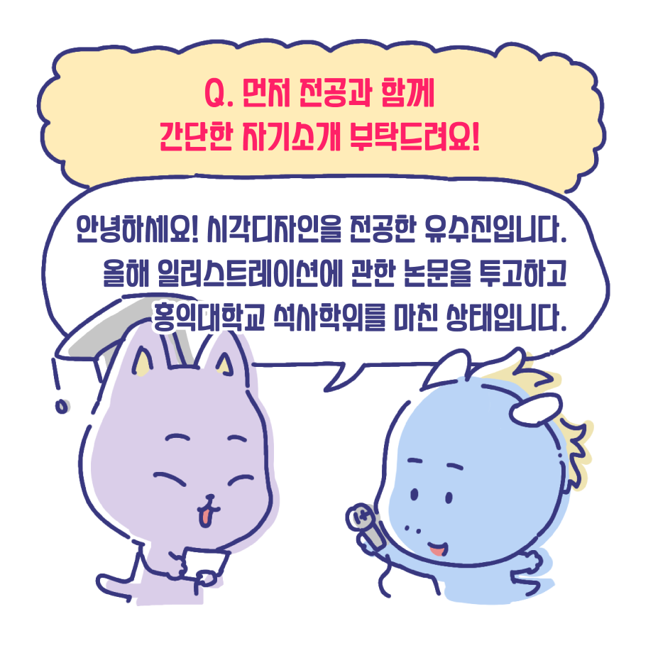 본문 시작 홈으로 입학/취업 학과소개 학과과정 시영소식 입학/취업 AI 학과자랑 SNS소통 홈페이지가이드 취업지금 입학여기 취업지금 전공소개 취업지금 페이스북 트위터 프린트 취업사례 중 대학원 진학 편 시각영상디자인학과 2386 2023-07-17 졸업생 중, 대학원 진학자 편입니다. 유수진 선배이며, 금년 2월에 홍익대학교 대학원을 졸업하였습니다. 인터뷰 및 웹툰 제작은 3학년 전희진 학생이 진행하였습니다. 목록 이전시각영상디자인학과 윤지훈 졸업생 - 가산디지털단지 디자인회사 취업! 다음 게임 레벨 디자이너 - 15학번 전상필 졸업생 담당부서 : 시각영상디자인학과 담당자 : - 연락처 : 043-649-1726 최종수정일 : 2024-10-26 만족도조사 만족도 조사 이 페이지에서 제공하는 정보에 대하여 만족하시나요? 매우만족 만족 보통 불만족 매우불만족