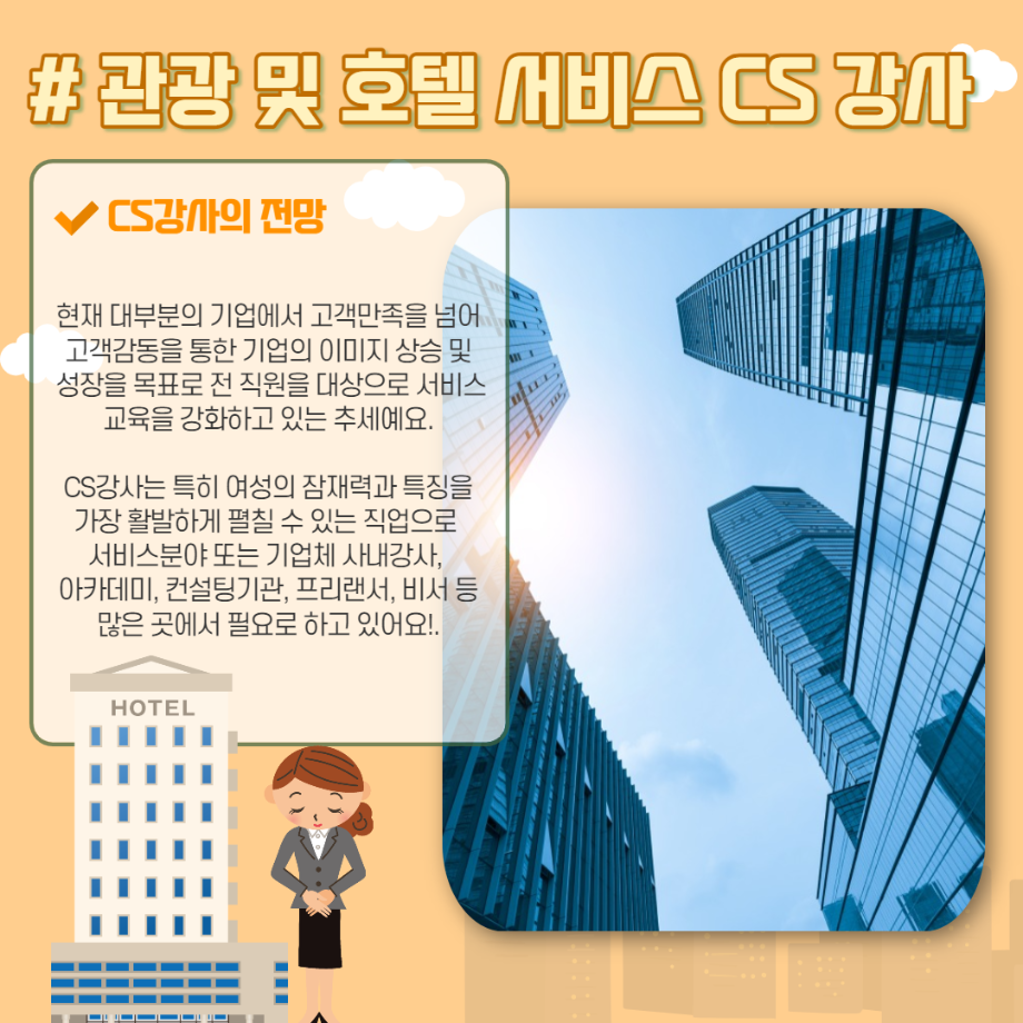 본문 시작 홈으로 머글 한줌단 학과안내 교수소개 교육과정 커뮤니티 머글 한줌단 홈페이지가이드 진로? 무물!! 어쩔 TV 저쩔 TV 진로? 무물!! TM Youtube TM Instagram TM Blog TM Facebook 진로? 무물!! 페이스북 트위터 프린트 관광 및 호텔 서비스 CS(Customer Satisfaction) 강사 관광경영학과 3274 2022-02-10 목록 이전크루즈 승무원 다음 푸드 코디네이터(Food Cordinator) 만족도조사 만족도 조사 이 페이지에서 제공하는 정보에 대하여 만족하시나요? 매우만족 만족 보통 불만족 매우불만족