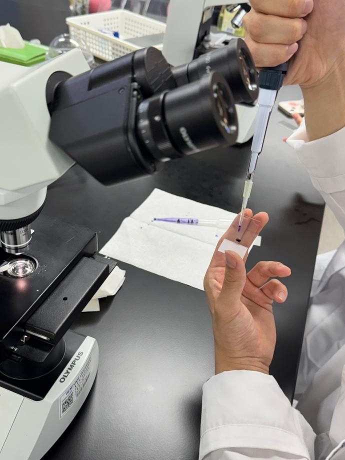본문 시작 초생체염색 임상병리학과 470 2025-05-29 New Methylene blue 시약을 이용하여 그물적혈구를 보기위한 초생체염색 후 현미경으로 검경을 하였습니다 목록 이전혈액도말표본 제작 & 회식 다음 오리엔테이션&회식 담당부서 : 임상병리학과 담당자 : - 연락처 : 043-649-1537 최종수정일 : 2024-10-26 만족도조사 만족도 조사 이 페이지에서 제공하는 정보에 대하여 만족하시나요? 매우만족 만족 보통 불만족 매우불만족