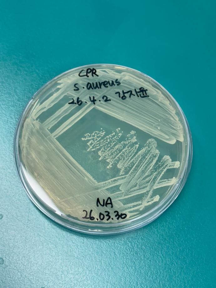 본문 시작 3,4차 Streaking 연습 임상병리학과 5 2026-03-26 S.aureus, E.coil, S.pyogenes와 같은 다양한 균주를 사용하여 3차, 4차 Streaking연습을 진행했습니다. 목록 이전OT 및 회식 다음 그람염색 담당부서 : 임상병리학과 담당자 : - 연락처 : 043-649-1537 최종수정일 : 2024-10-26 만족도조사 만족도 조사 이 페이지에서 제공하는 정보에 대하여 만족하시나요? 매우만족 만족 보통 불만족 매우불만족