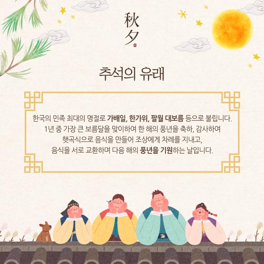 본문 시작 홈으로 학부소식 학부소개 교육과정 학부소식 커뮤니티 홈페이지가이드 미문한컷 공지사항 학사일정 학부행사 미문뉴스 미문한컷 포토갤러리 미문한컷 페이스북 트위터 프린트 미문 한 컷 | 일곱 번째 이야기 미디어문화학부 1686 2022-09-09 여러분 안녕하세요! 추석 연휴가 시작되었습니다 :) 혹시 추석의 유래를 알고 계신가요? 모르셨다면 카드뉴스를 통해 간단히 살펴보면 좋을 것 같아요! 다들 보름달처럼 마음마저 가득 찬 풍요로운 추석 보내시길 바랍니다! 긴 연휴, 잘 쉬고 건강한 모습으로 다시 만나요-! 목록 다음 미문 한 컷 | 여덟 번째 이야기 다음 미문 한 컷 | 아홉 번째 이야기 만족도조사 만족도 조사 이 페이지에서 제공하는 정보에 대하여 만족하시나요? 매우만족 만족 보통 불만족 매우불만족