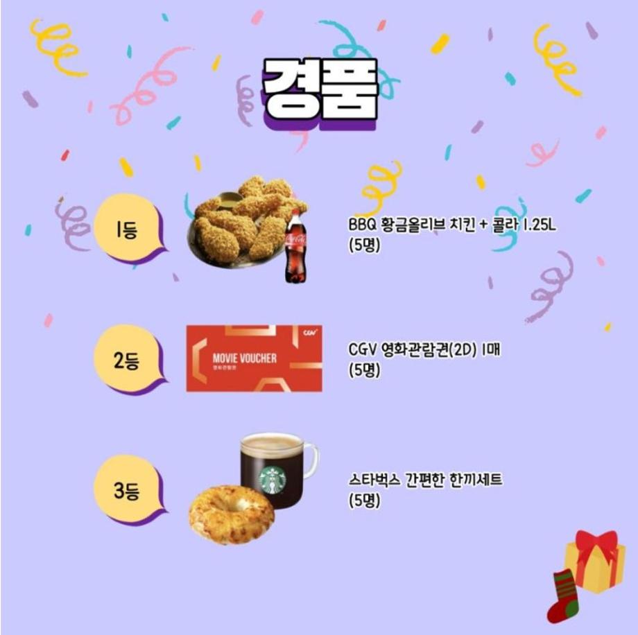 2등 CGV 영화관람권(2D) 1매(5명)