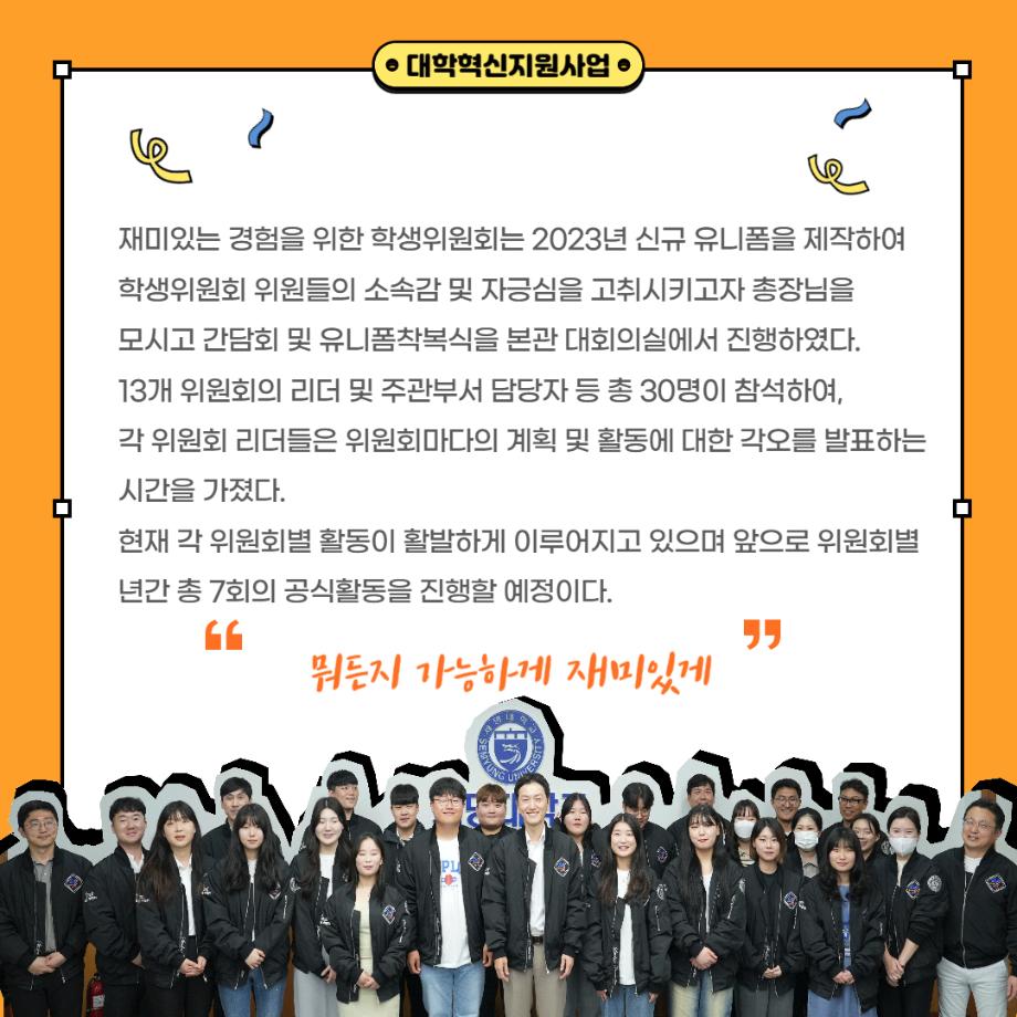 본문 시작 홈으로 포토갤러리 학생위원회 개요 학생위원회 소개 공지사항 활동결과 홈페이지가이드 포토갤러리 페이스북 트위터 프린트 [학생위원회] 2023 간담회 및 유니폼 착복식 시행 학생처 1824 2023-05-16 일시 : 2023.05.16(화) 장소 : 본관 3층 대회의실 목록 다음 [따뜻한 위원회]너의 학점을 처방해줄게 다음 [이상한 위원회] 학생식당 환경개선 및 특별메뉴 판매 담당부서 : 장학복지팀 담당자 : - 연락처 : 043-649-1142 최종수정일 : 2024-10-26 만족도조사 만족도 조사 이 페이지에서 제공하는 정보에 대하여 만족하시나요? 매우만족 만족 보통 불만족 매우불만족