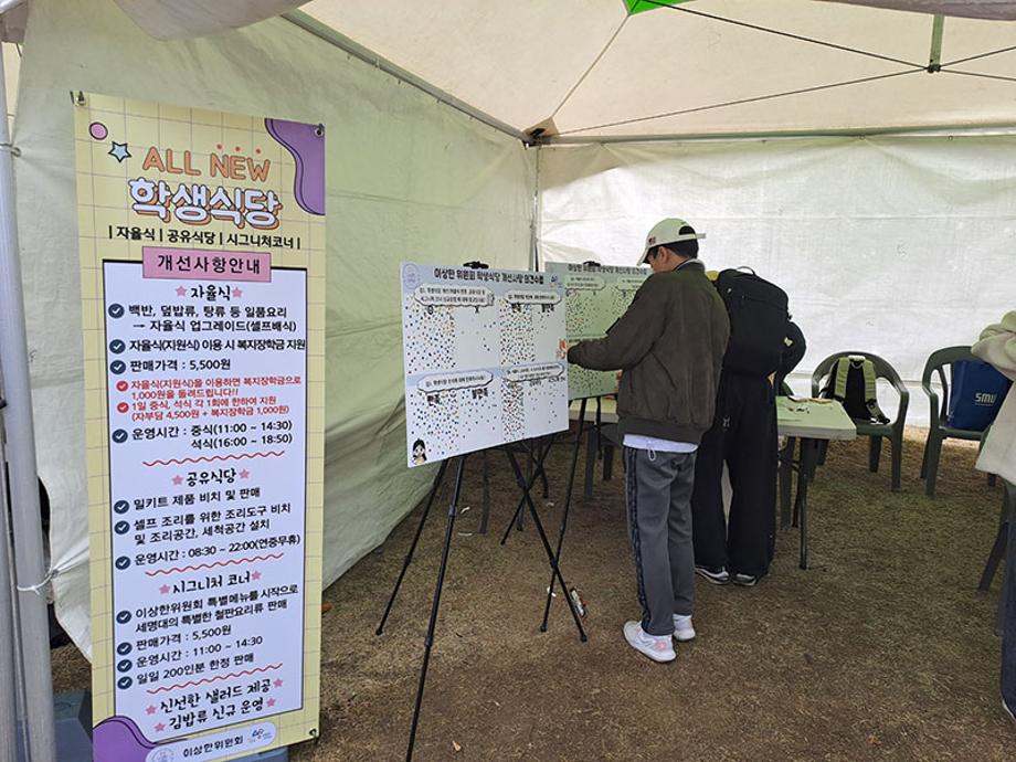 세명대학교 재미있는 경험을 위한 학생위원회 중 이상한위원회는 4월 11일(화)부터 12일(수)까지 뭐든지광장에서 학생식당 개선사항에 대해 홍보 및 의견수렴을 실시하였다.