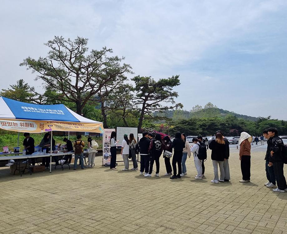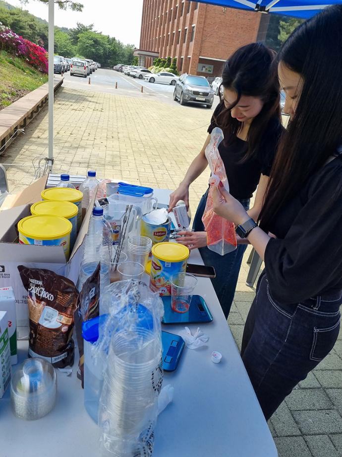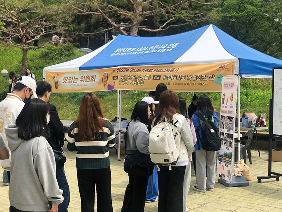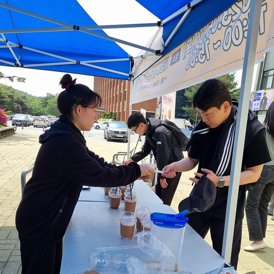 본문 시작 홈으로 포토갤러리 학생위원회 개요 학생위원회 소개 공지사항 활동결과 홈페이지가이드 포토갤러리 페이스북 트위터 프린트 [맛있는 위원회]제 1차 음료나눔행사 학생처 3000 2023-05-11 세명대학교 재미있는 경험을 위한 학생위원회 중 맛있는 위원회는 5월 4일(목) 11시부터 15시까지 학생회관 앞에서 음료나눔행사를 진행하였다. 교내 숨터(SUMTU) 및 숨은 장소를 알리기 위해 간단한 퀴즈와 홍보를 진행하였고, 퀴즈 정답자는 맛있는위원회에서 만든 음료(딸기라떼, 초코라떼, 아이스티)를 제공 받았다. 이를 통해, 학생이 음료를 가지고 교내 곳곳에 있는 장소에서 휴식, 공부, 여가 활동 등을 할 수 있는 기회를 제공하였다. 목록 이전[이상한위원회] 학생식당 개선사항 홍보 및 의견수렴(만족도조사) 실시 다음 [착한 위원회] '세명인의 계절을 들려줘' 설문조사 결과 담당부서 : 장학복지팀 담당자 : - 연락처 : 043-649-1142 최종수정일 : 2024-10-26 만족도조사 만족도 조사 이 페이지에서 제공하는 정보에 대하여 만족하시나요? 매우만족 만족 보통 불만족 매우불만족