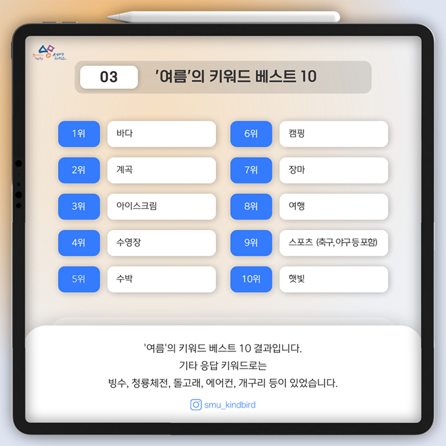 본문 시작 홈으로 포토갤러리 학생위원회 개요 학생위원회 소개 공지사항 활동결과 홈페이지가이드 포토갤러리 페이스북 트위터 프린트 [착한 위원회] '세명인의 계절을 들려줘' 설문조사 결과 학생처 3054 2023-05-11 [착한 위원회] '세명인의 계절을 들려줘' 설문조사 결과 목록 이전[맛있는 위원회]제 1차 음료나눔행사 이전[착한 위원회] 제 2회 신축새집 분양행사 담당부서 : 장학복지팀 담당자 : - 연락처 : 043-649-1142 최종수정일 : 2024-10-26 만족도조사 만족도 조사 이 페이지에서 제공하는 정보에 대하여 만족하시나요? 매우만족 만족 보통 불만족 매우불만족