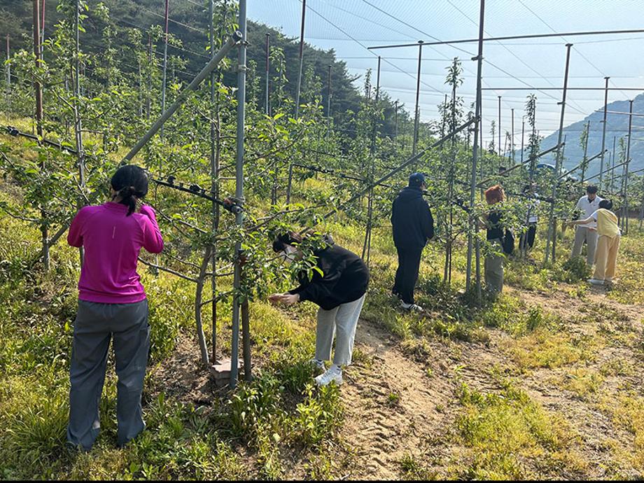 본문 시작 홈으로 포토갤러리 학생위원회 개요 학생위원회 소개 공지사항 활동결과 홈페이지가이드 포토갤러리 페이스북 트위터 프린트 [벗어나는 위원회] 농촌봉사활동 학생처 2711 2023-06-01 세명대학교 재미있는 경험을 위한 학생위원회 중 벗어나는 위원회가 5월 13일(토)에 제천시 봉양읍 명암리 일대에서 농촌봉사활동을 시행하였다. RCY커뮤니티 소속 학생들과 함께 사과 꽃따기 봉사활동을 진행하였으며, 총 20여명의 학생들이 참여하였다. 벗어나는 위원회는 농촌봉사활동 뿐만 아니라 다양한 탐험(여행) 활동을 계획하고 있다. 목록 이전[통하는 위원회]체전통통 다음 [알려주는 위원회] 너의MBTI를 알려줘 담당부서 : 장학복지팀 담당자 : - 연락처 : 043-649-1142 최종수정일 : 2024-10-26 만족도조사 만족도 조사 이 페이지에서 제공하는 정보에 대하여 만족하시나요? 매우만족 만족 보통 불만족 매우불만족