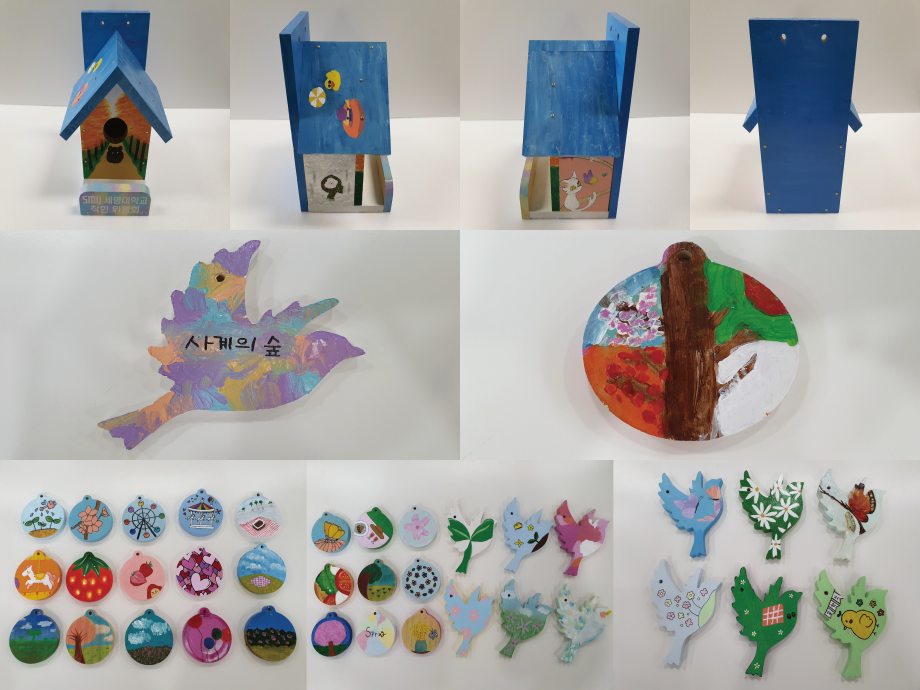 본문 시작 홈으로 포토갤러리 학생위원회 개요 학생위원회 소개 공지사항 활동결과 홈페이지가이드 포토갤러리 페이스북 트위터 프린트 [착한 위원회] 2023-1학기 포롱포롱 공방 운영 결과 학생처 3690 2023-06-15 [착한 위원회] 2023-1학기 포롱포롱 공방 운영 결과 - 운영기간 : 2023년 5월 ~ 6월 - 운영장소 : 학생회관 519호 - 체험인원 : 31명 - 제작수량 : 새집 13개, 오너먼트 150개 * '세명인의 계절을 들려줘!' 설문 결과를 반영하여 계절이 담긴 새집 및 오너먼트 제작 활동 시행 목록 이전[꽃피는 위원회] 캠퍼스 꽃모종 심기 활동 다음 [따뜻한위원회] 제2회 세:명(名) 거리 만들기 공모전 결과 안내 담당부서 : 장학복지팀 담당자 : - 연락처 : 043-649-1142 최종수정일 : 2024-10-26 만족도조사 만족도 조사 이 페이지에서 제공하는 정보에 대하여 만족하시나요? 매우만족 만족 보통 불만족 매우불만족