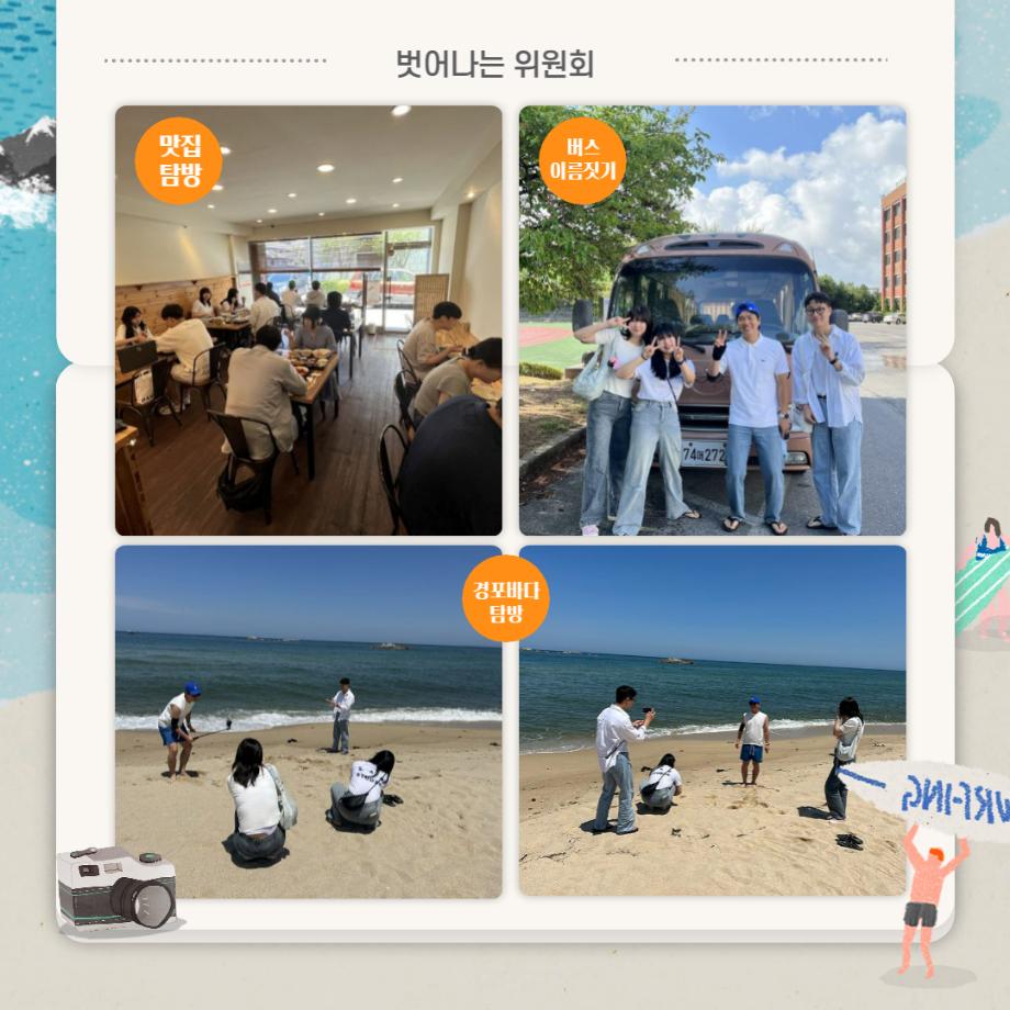 세명대학교 재미있는 경험을 위한 학생위원회 중 벗어나는 위원회가 6월 9일(금)에 강원도 강릉시 경포대 일대에서 벗어나는 위원회와 함께하는 탐험을 시행하였다.