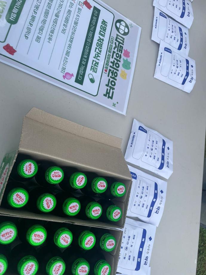 2) 당 충전을 위한 소량의 간식 및 에너지드링크를 함께 제공 봉투에 담아서 제공