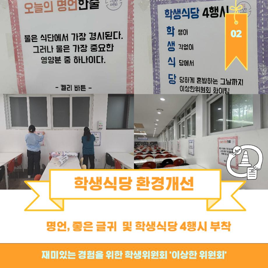 본문 시작 홈으로 포토갤러리 학생위원회 개요 학생위원회 소개 공지사항 활동결과 홈페이지가이드 포토갤러리 페이스북 트위터 프린트 [이상한 위원회] 학생식당 환경개선 및 특별메뉴 판매 학생처 9106 2023-07-07 이상한위원회 특별메뉴 판매 목록 이전[학생위원회] 2023 간담회 및 유니폼 착복식 시행 이전[춤추는 위원회] 제 2회 청춘콘서트 담당부서 : 장학복지팀 담당자 : - 연락처 : 043-649-1142 최종수정일 : 2024-10-26 만족도조사 만족도 조사 이 페이지에서 제공하는 정보에 대하여 만족하시나요? 매우만족 만족 보통 불만족 매우불만족