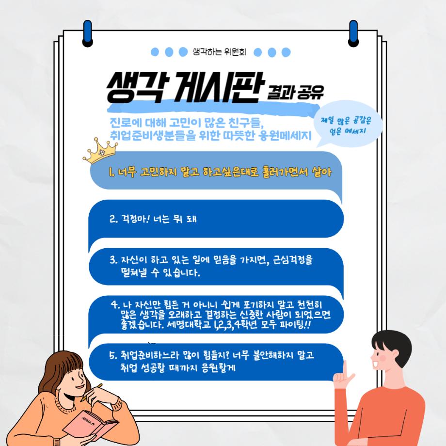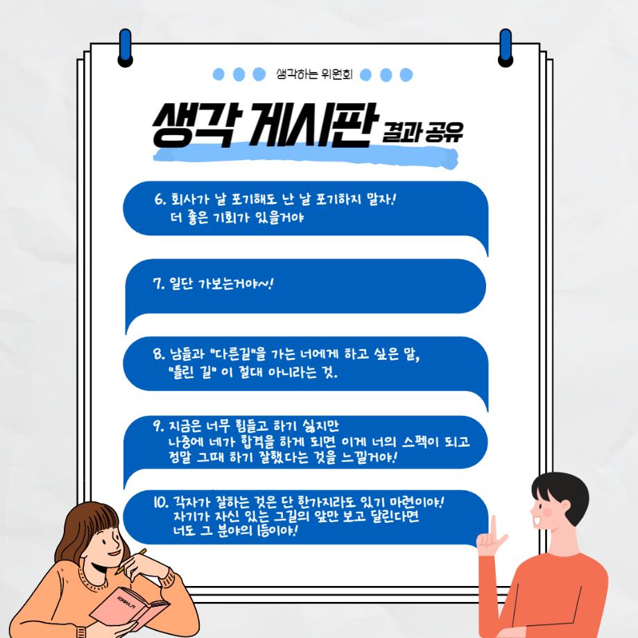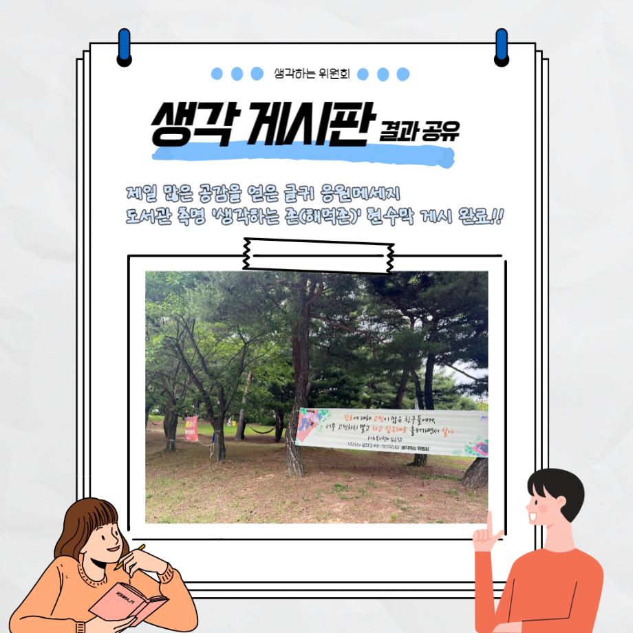 본문 시작 홈으로 포토갤러리 학생위원회 개요 학생위원회 소개 공지사항 활동결과 홈페이지가이드 포토갤러리 페이스북 트위터 프린트 [생각하는 위원회] 생각게시판 결과 학술정보원 6940 2023-07-04 생각게시판 결과 공감문구 게시 장소 : 민송도서관 2층 주차장 옆 숲길 목록 다음 [밀어주는 위원회] 제 2회 꿈실현장학금 수여식 [무소출정식] 다음 [꽃피는 위원회] 비즈를 활용한 우정템(꽃반지,꽃키링) 만들기 담당부서 : 장학복지팀 담당자 : - 연락처 : 043-649-1142 최종수정일 : 2024-10-26 만족도조사 만족도 조사 이 페이지에서 제공하는 정보에 대하여 만족하시나요? 매우만족 만족 보통 불만족 매우불만족