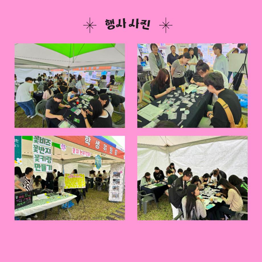 본문 시작 홈으로 포토갤러리 학생위원회 개요 학생위원회 소개 공지사항 활동결과 홈페이지가이드 포토갤러리 페이스북 트위터 프린트 [꽃피는 위원회] 비즈를 활용한 우정템(꽃반지,꽃키링) 만들기 학생처 2470 2023-09-22 꽃피는 위원회는 제 31회 청룡축전기간인 9/20일 뭐든지광장에서 비즈를 활용한 우정템 만들기 행사를 진행하였다. 총 100명의 구성원이 참여한 꽃피는 위원회 이번 활동은 위원회에 대한 응원메세지 작성 및 꽃반지 만들기, 꽃키링 만들기로 구성되어 진행되어 3시간 30분 동안의 활동시간 내내 참여자의 호응을 받으며 프로그램을 진행하였다. 목록 이전[생각하는 위원회] 생각게시판 결과 다음 [이상한 위원회] 학생식당 개선사항 SNS인증이벤트 담당부서 : 장학복지팀 담당자 : - 연락처 : 043-649-1142 최종수정일 : 2024-10-26 만족도조사 만족도 조사 이 페이지에서 제공하는 정보에 대하여 만족하시나요? 매우만족 만족 보통 불만족 매우불만족