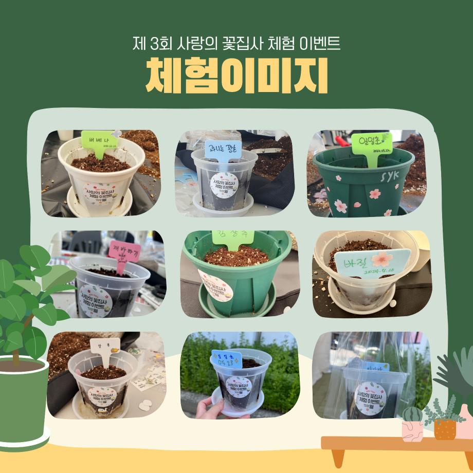 본문 시작 홈으로 포토갤러리 학생위원회 개요 학생위원회 소개 공지사항 활동결과 홈페이지가이드 포토갤러리 페이스북 트위터 프린트 [꽃피는 위원회] 제 3회 사랑의 꽃집사 체험이벤트 학생처 1659 2024-05-23 제 3회 사랑의 꽃집사 체험 이벤트 일시 : 2024.05.23(목) 12:00 ~ 15:00 장소 : 학생회관 앞 광장 참여인원 : 본교 구성원 114명 (꽝 15명, 채소씨앗 30명, 꽃씨앗 67명) 참여한 구성원분들의 식집사 체험 성공을 기원합니다. 목록 이전[맛있는 위원회] 맛그램 틀렸그램 다음 [생각하는 위원회] 대형 현수막 문구 공모전 '준비 시~작' 담당부서 : 장학복지팀 담당자 : - 연락처 : 043-649-1142 최종수정일 : 2024-10-26 만족도조사 만족도 조사 이 페이지에서 제공하는 정보에 대하여 만족하시나요? 매우만족 만족 보통 불만족 매우불만족