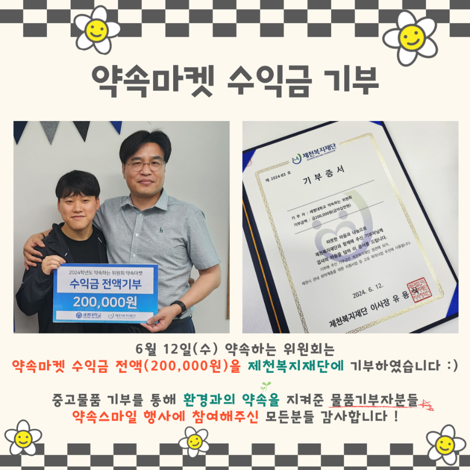 (기부금은 제천 관내 취약계층을 위한 지원사업에 사용될 예정입니다.)