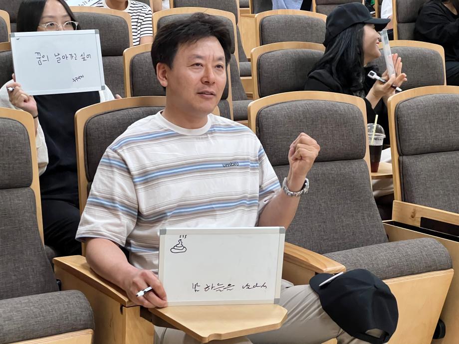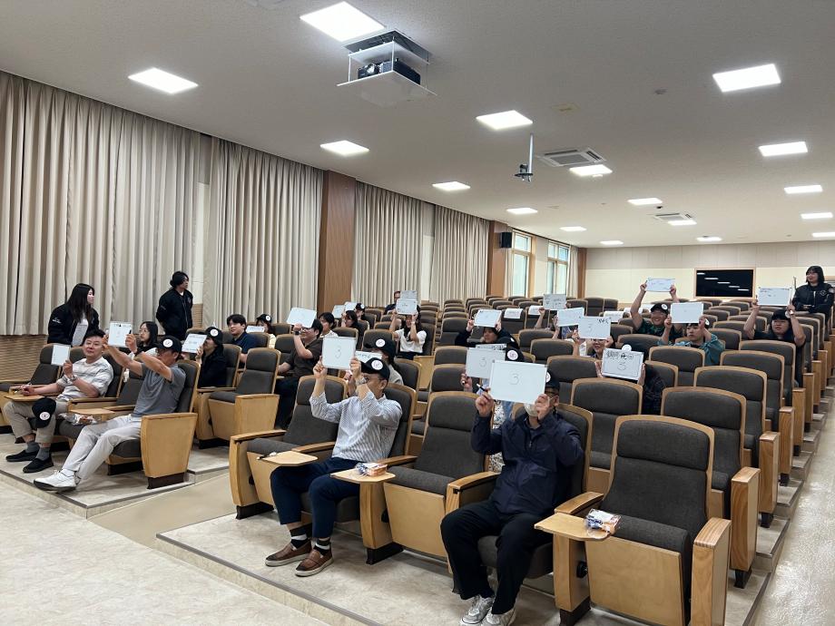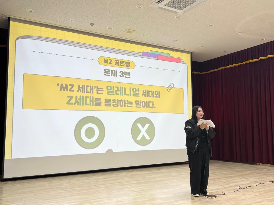 본문 시작 홈으로 포토갤러리 학생위원회 개요 학생위원회 소개 공지사항 활동결과 홈페이지가이드 포토갤러리 페이스북 트위터 프린트 [통하는 위원회]MZ 골든벨 대학혁신지원단 1842 2024-06-07 1) 행사일시 : 2024.05.07.(목) 14:00 2) 행사장소 : 민송도서관 S:MU 콘텐츠홀 3) 행사내용 : MZ 세대와 X 세대 문화를 주제로 골든벨을 개최하여 교직원들과 학생들이 서로의 문화를 배우고 가까워질 수 있는 계기를 마련 4) 참여인원 : 38명 - 통하는 위원회 13명 - 참여자 25명 (교수 3명, 조교 9명, 직원 12명) 목록 이전[통하는 위원회] MZ력 & X력 테스트 다음 [밀어주는 위원회] 꿈실현장학금 장학증서 수여식 담당부서 : 장학복지팀 담당자 : - 연락처 : 043-649-1142 최종수정일 : 2024-10-26 만족도조사 만족도 조사 이 페이지에서 제공하는 정보에 대하여 만족하시나요? 매우만족 만족 보통 불만족 매우불만족