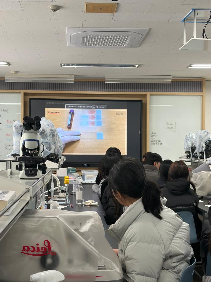 본문 시작 신입생 OT 전공체험 임상병리학과 6 2026-02-24 신입생 OT를 맞아 각 동아리에서 전공 체험을 진행했습니다. 임상병리사의 기본 덕목인 혈액 스미어를 직접 실습해보며 신입생들에게 임상병리학의 매력을 알리고 동아리를 홍보할 수 있는 좋은 기회가 되었습니다. 목록 이전초생체 염색, wright 염색, AB형-O형 교차반응 검사 다음 동아리날 만족도조사 만족도 조사 이 페이지에서 제공하는 정보에 대하여 만족하시나요? 매우만족 만족 보통 불만족 매우불만족