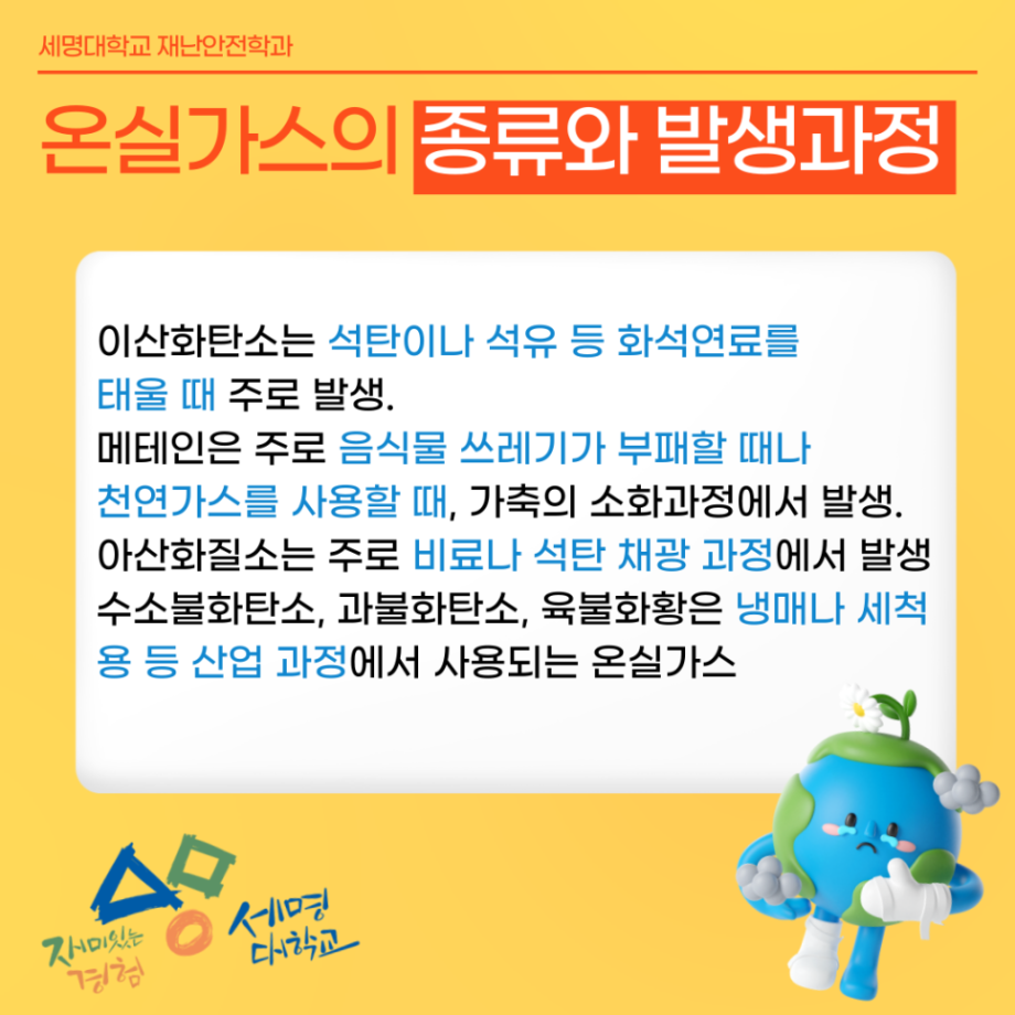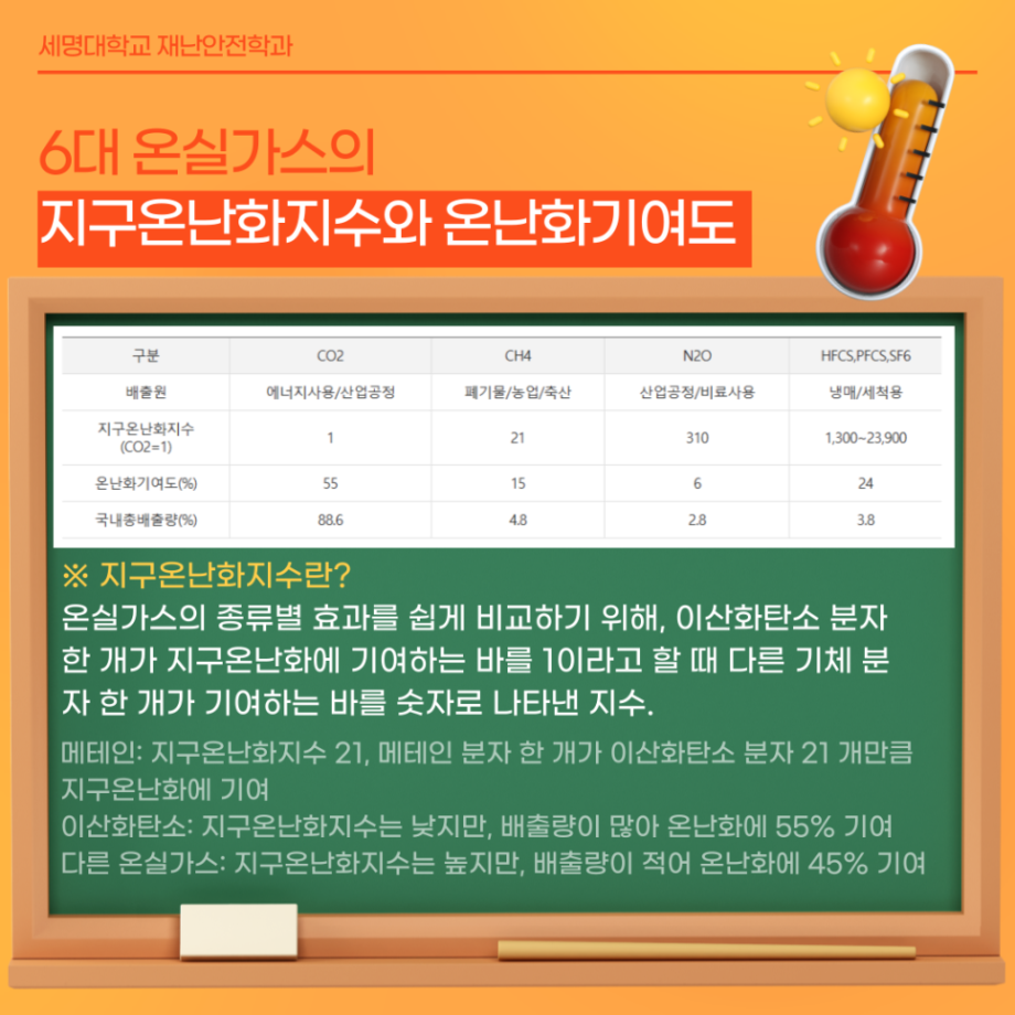 본문 시작 홈으로 커뮤니티 학과소개 교수소개 교육과정 커뮤니티 홈페이지가이드 포토갤러리 학과공지 학사일정 채용정보 및 자료 학생회 포토갤러리 포토갤러리 페이스북 트위터 프린트 재난안전 이야기 Part 2.온실가스의 종류와 발생과정 재난안전학과 2843 2023-08-11 목록 이전재난안전 이야기 Part 1.지구온난화의 원인 다음 재난안전 이야기 Part 3.기후위기 만족도조사 만족도 조사 이 페이지에서 제공하는 정보에 대하여 만족하시나요? 매우만족 만족 보통 불만족 매우불만족