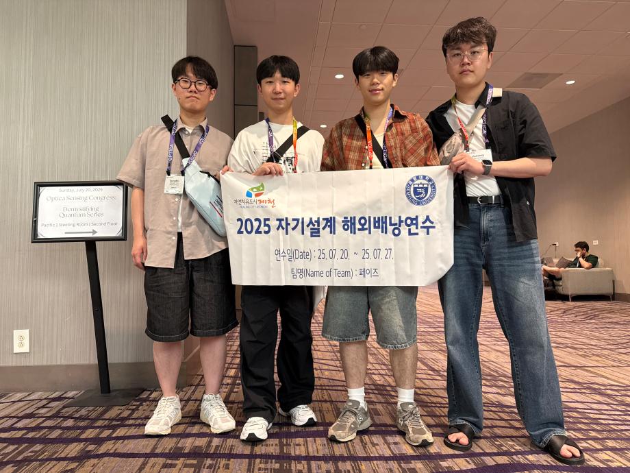 본문 시작 홈으로 커뮤니티 학과소개 교수소개 교육과정 커뮤니티 입학 정보 홈페이지가이드 포토갤러리 학과공지 취업/실습정보 포토갤러리 포토갤러리 페이스북 트위터 프린트 2025 자기설계 해외배낭연수 전기전자공학과 763 2025-08-03 2025 자기설계 해외배낭연수 팀명: "페이즈" 연수지: 미국 (LA) 목록 이전세명대학교 전기공학과 캡스톤디자인팀 '청전’, 대한전기학회 하계학술대회 스마트 에너지 챌린지 참가 다음 전기전자공학과_여름학기 공동교육 진행 만족도조사 만족도 조사 이 페이지에서 제공하는 정보에 대하여 만족하시나요? 매우만족 만족 보통 불만족 매우불만족