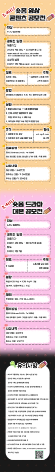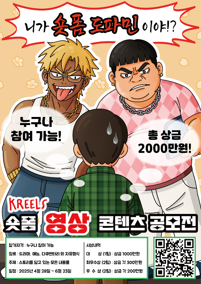 본문 시작 홈으로 MCC News 학과소개 교수소개 학과과정 MCC News MCC SNS 홈페이지가이드 미디어 정보통 학과 및 재학생 교수 및 졸업생 미디어 정보통 미디어 정보통 페이스북 트위터 프린트 K-REELS 숏폼 컨텐츠 공모전 미디어콘텐츠창작학과 1657 2025-04-24 자세한 내용은 저희 블로그(큐알코드)를 통해서 지속적으로 업데이트가 된다고 하니 많은 관심바랍니다. https://blog.naver.com/k_reelscontest 목록 이전💐봄에 나들이 가기 좋은 장소~!🌸 다음 커뮤니케이션디자인국제공모전 담당부서 : 미디어콘텐츠창작학과 담당자 : - 연락처 : 043-649-1741 최종수정일 : 2024-10-26 만족도조사 만족도 조사 이 페이지에서 제공하는 정보에 대하여 만족하시나요? 매우만족 만족 보통 불만족 매우불만족