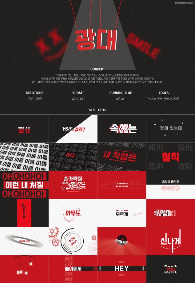본문 시작 홈으로 학과자랑 학과소개 학과과정 시영소식 입학/취업 AI 학과자랑 SNS소통 홈페이지가이드 졸업전시회 학과자랑 갤러리 공모전 동아리 졸업전시회 2023 졸업작품 2022 졸업작품 2023 졸업작품 2024 졸업전시 2025 졸업전시 2026 졸업전시 2023 졸업작품 페이스북 트위터 프린트 2023년도 시각영상디자인학과 졸업작품-영상 부문(3) 시각영상디자인학과 1823 2023-12-04 목록 이전2023년도 시각영상디자인학과 졸업작품-영상 부문(2) 다음 2023년도 시각영상디자인학과 졸업작품-영상 부문(4) 만족도조사 만족도 조사 이 페이지에서 제공하는 정보에 대하여 만족하시나요? 매우만족 만족 보통 불만족 매우불만족
